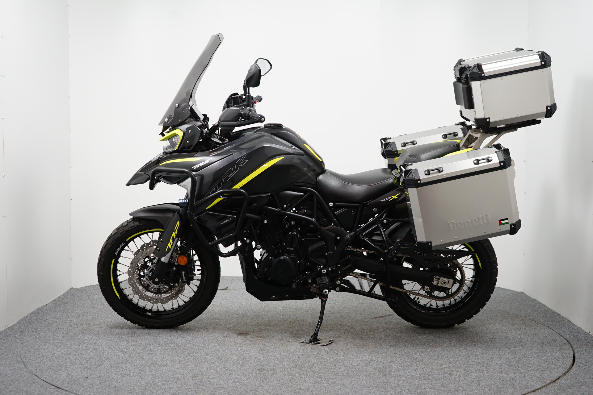 Nette en zeer compleet uitgeruste Benelli TRK 702X. De motor is voorzien van een valbeugeset inclusief mistlampen, skidplate, middenbok, handkappen, handvatverwarming, zadelverwarming, 3-delige aluminium kofferset, tankting, tankpad, rijmodi en cruise controle.