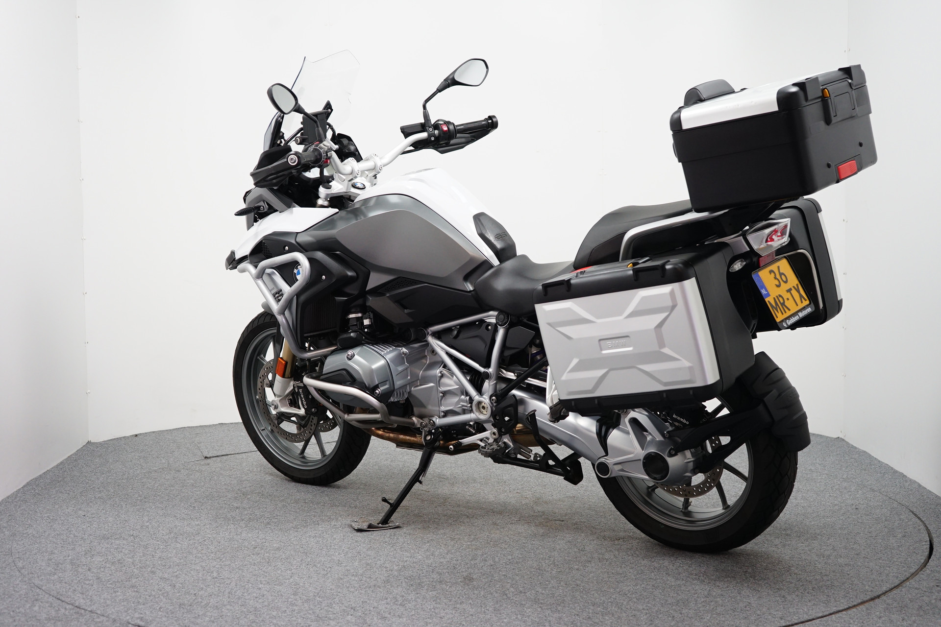Een in prachtstaat verkerende en goed onderhouden BMW R 1200 GS ABS met ESA, Handvatverwarming, Instelbare Rij-modi, Kofferset, Topkoffer, Valbeugelset, Trip info, Navigatie voorbereiding en een koplamp rooster.