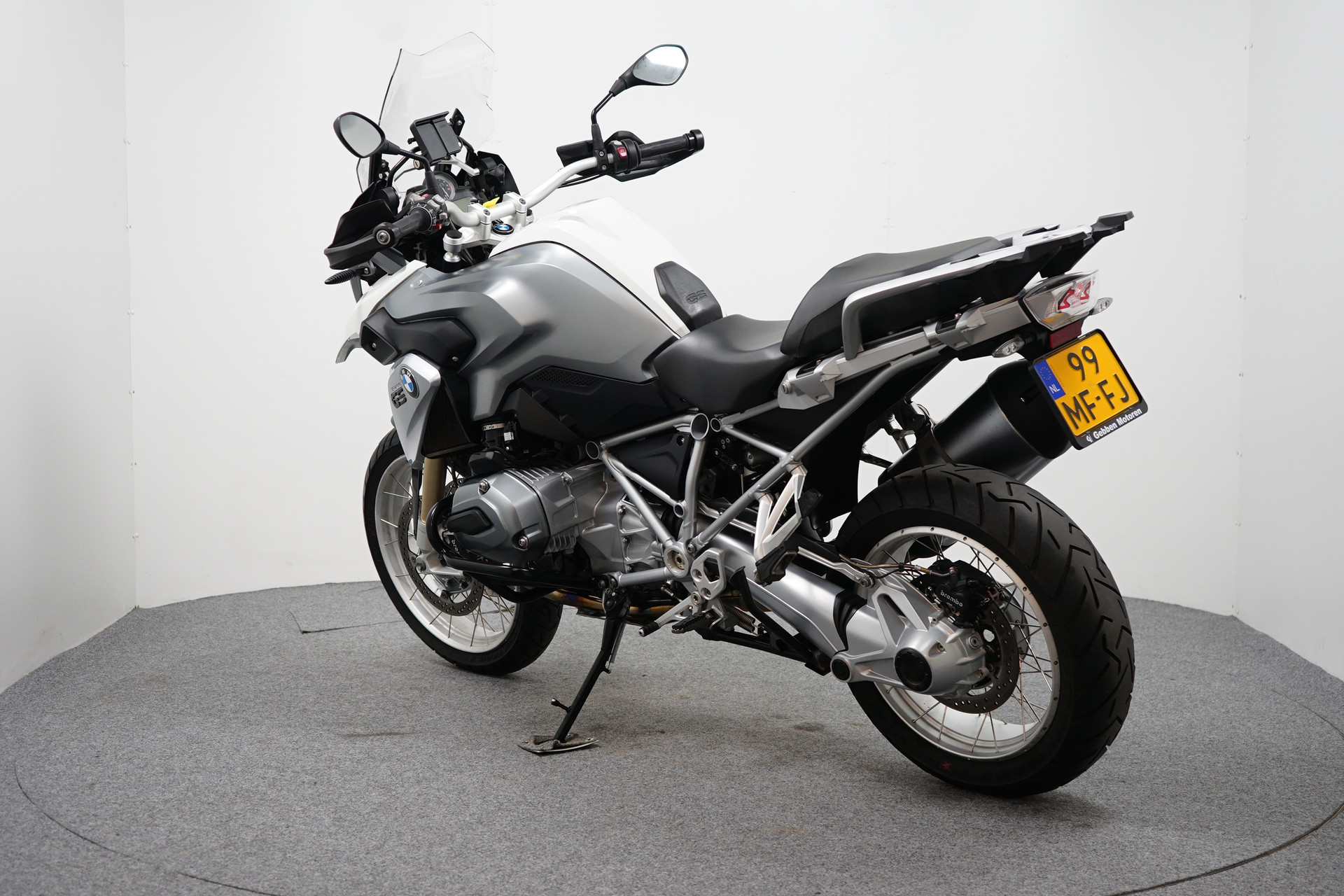Een in nette staat verkerende en goed onderhouden BMW R 1200 GS ABS met Cruise Controle, ESA, Handvatverwarming, Valbeugels, Handkappen en middenbok.