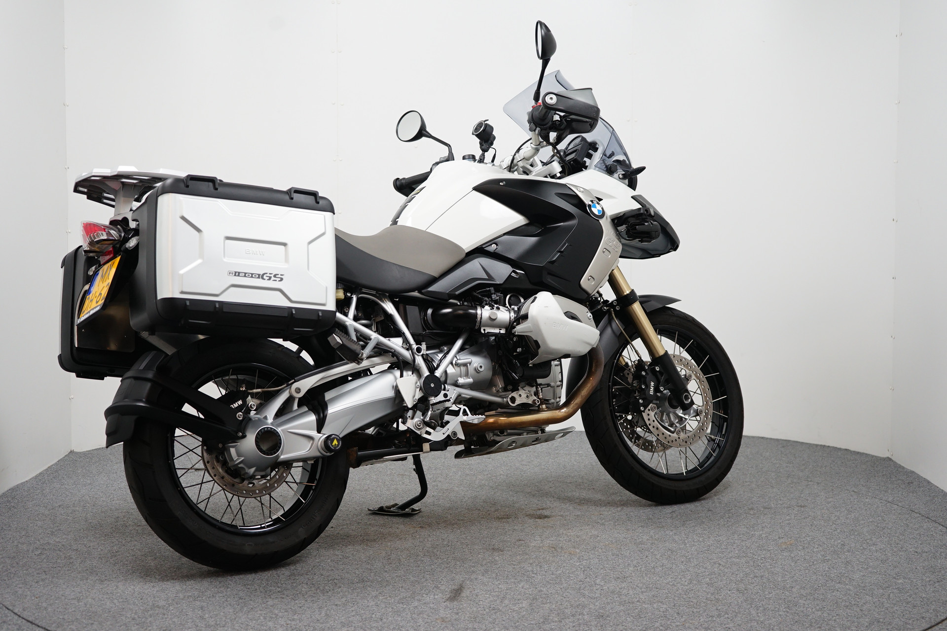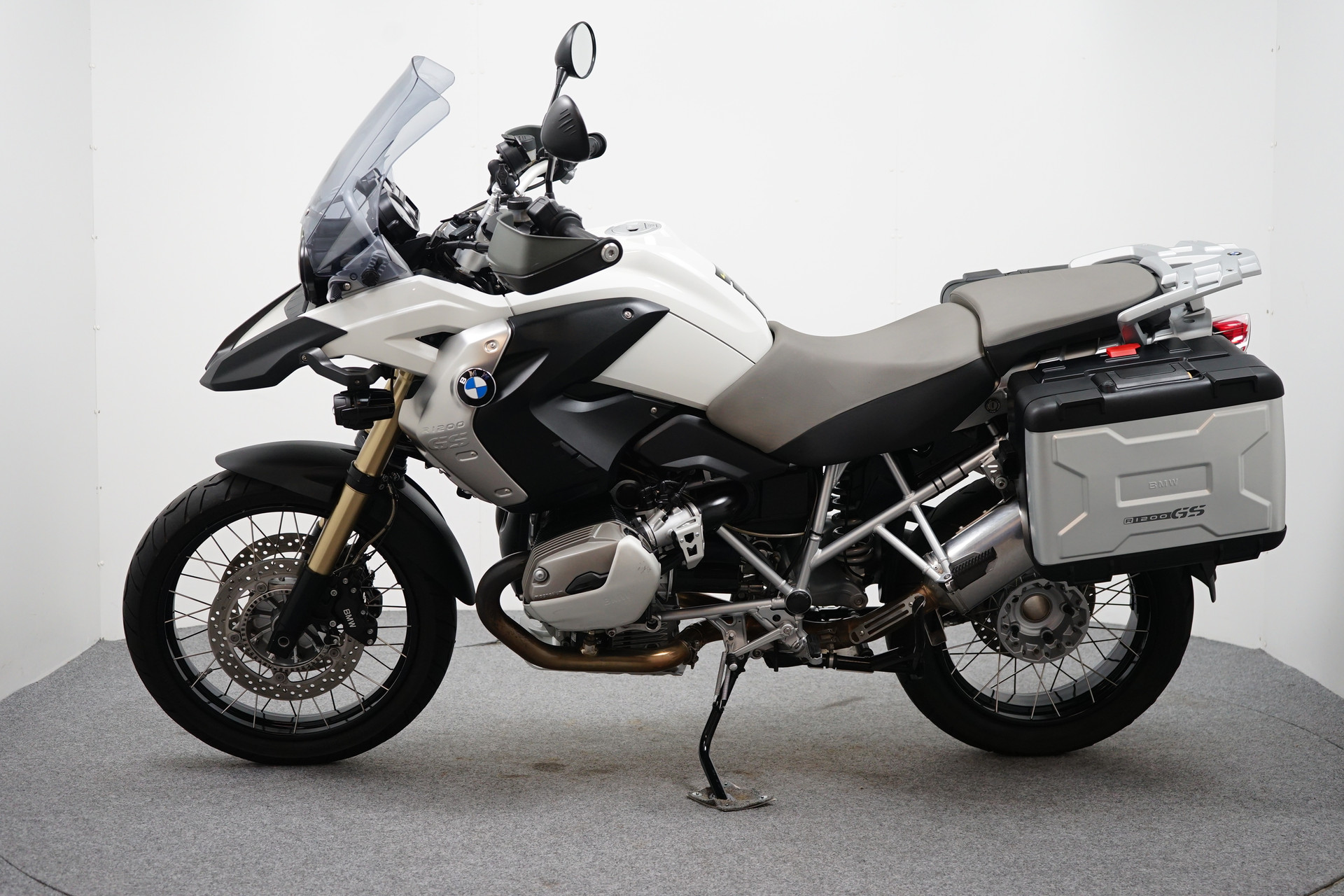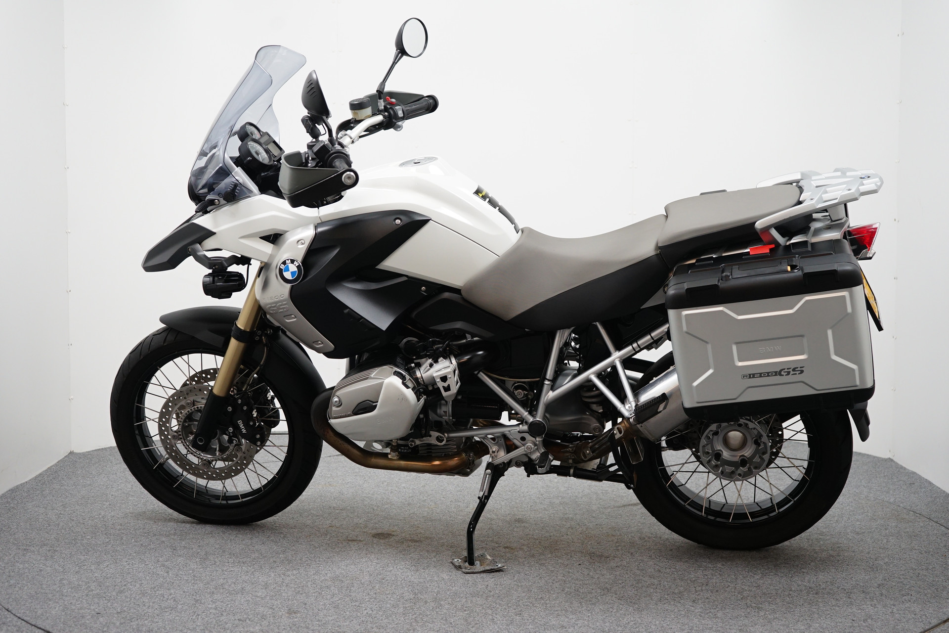 Een in nette staat verkerende BMW R 1200 GS ABS met ESA, Handvatverwarming, Middenbok, Mistlampen, Led knipperlichten, 3-delige kofferset en sportdemper.