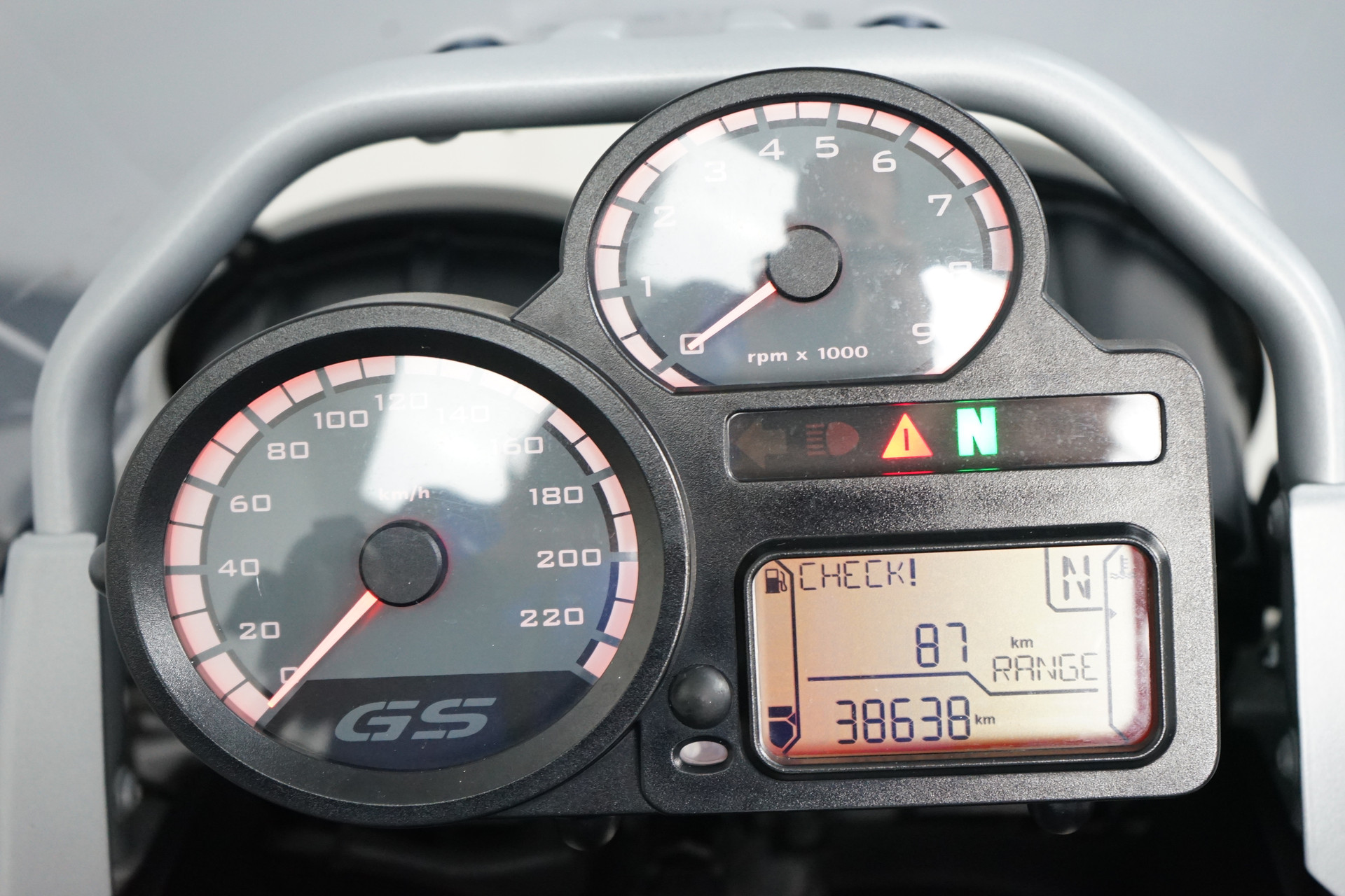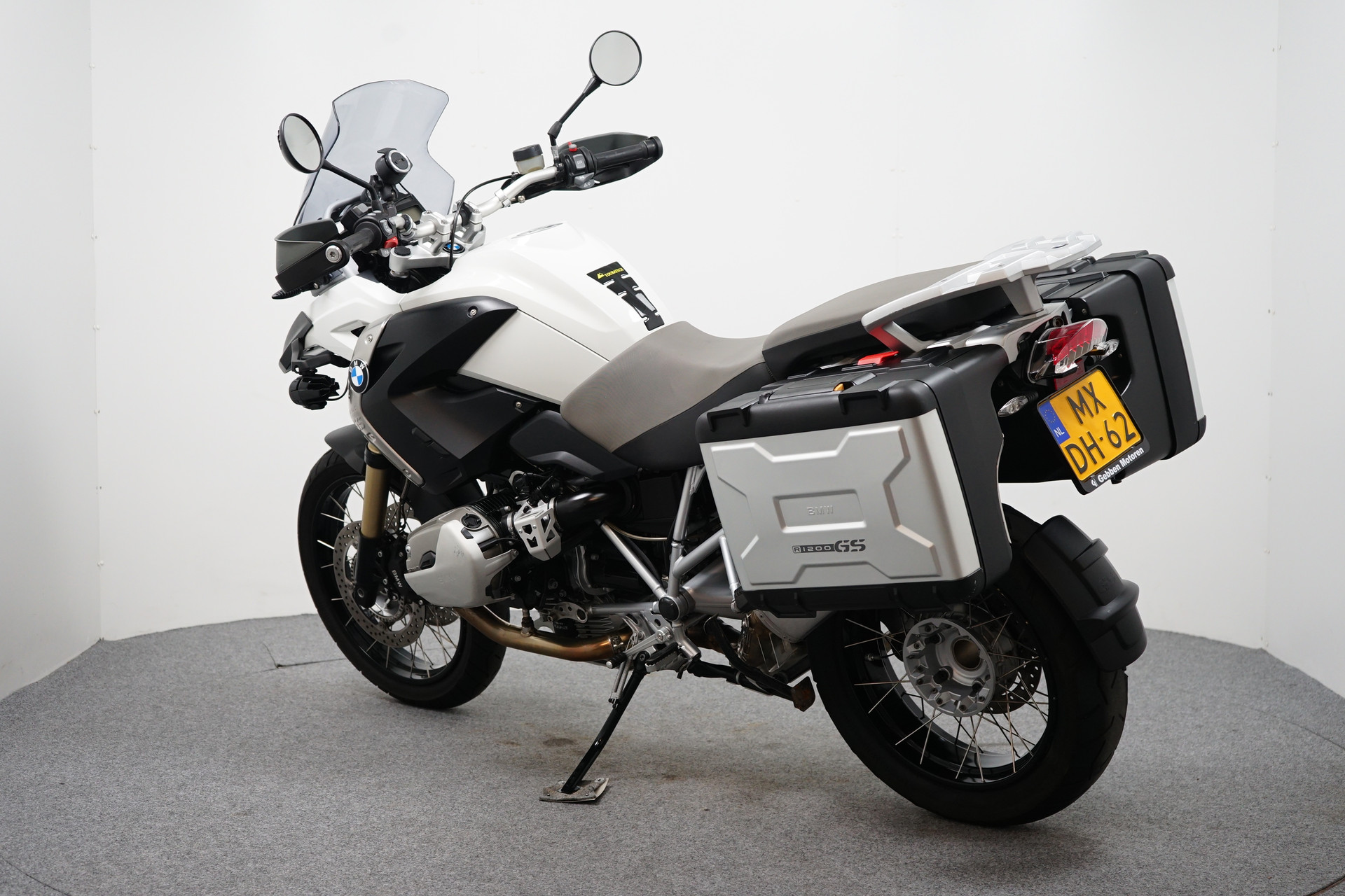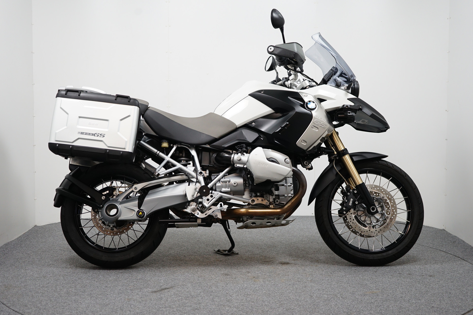 Een in nette staat verkerende BMW R 1200 GS ABS met ESA, Handvatverwarming, Middenbok, Mistlampen, Led knipperlichten, 3-delige kofferset en sportdemper.
