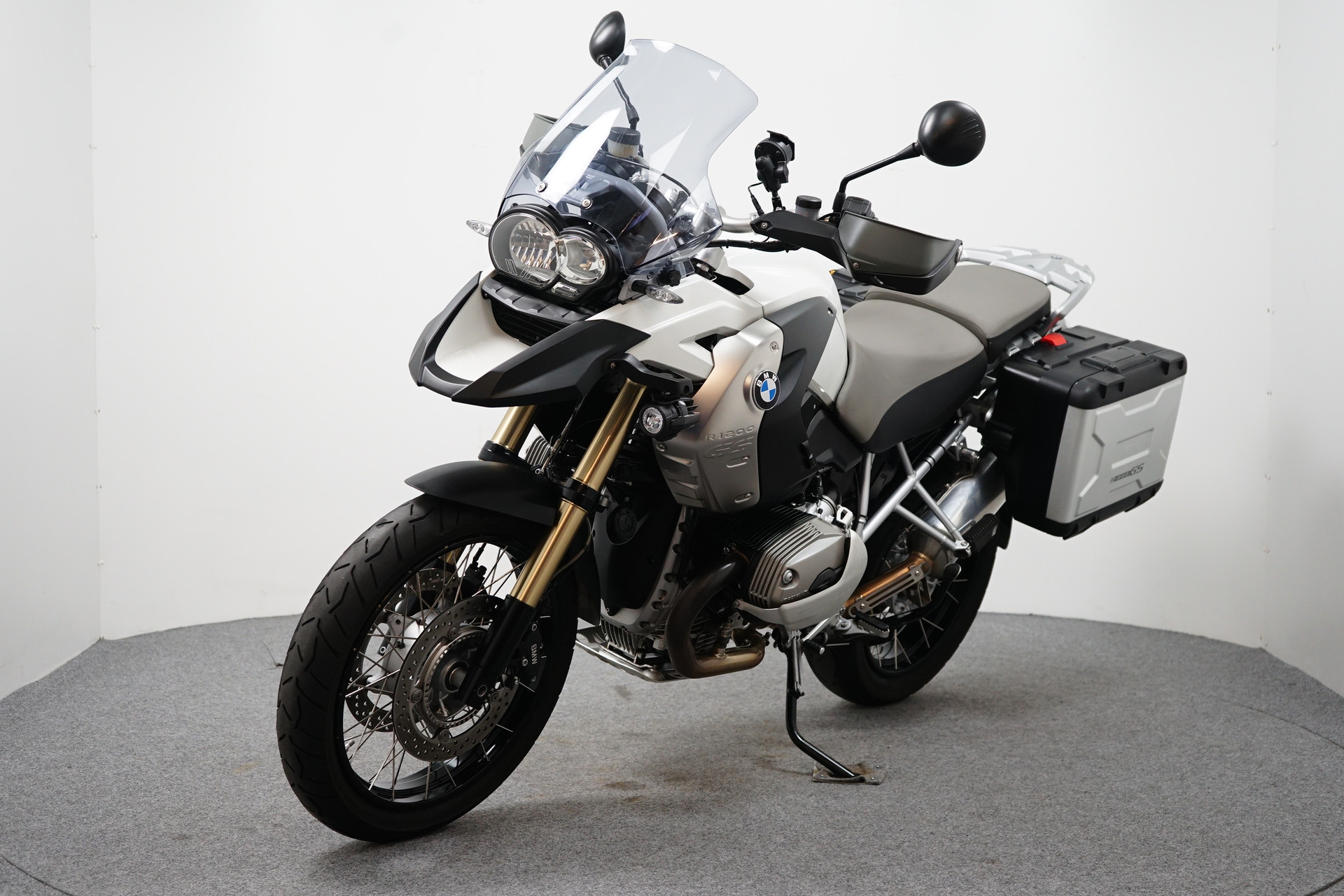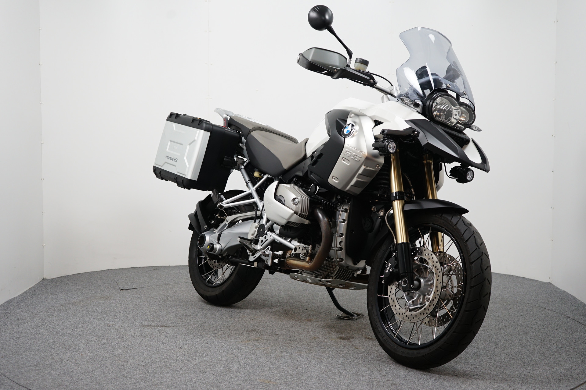 Een in nette staat verkerende BMW R 1200 GS ABS met ESA, Handvatverwarming, Middenbok, Mistlampen, Led knipperlichten, 3-delige kofferset en sportdemper.