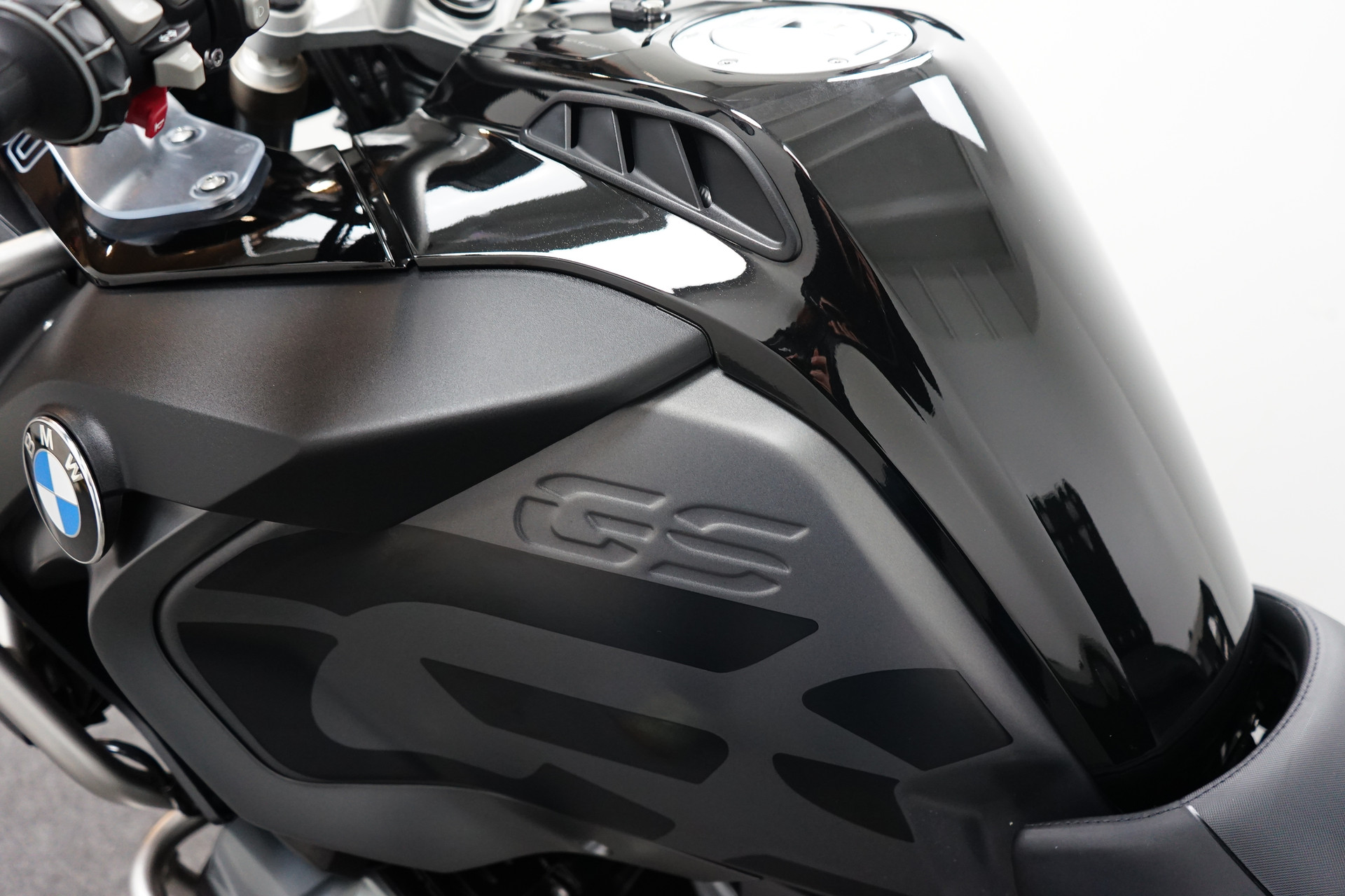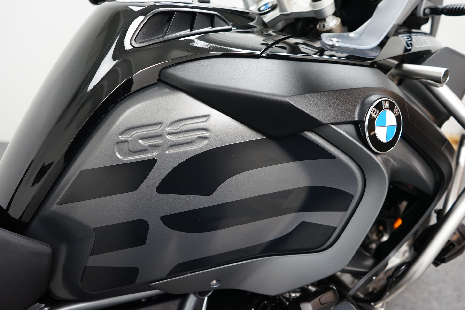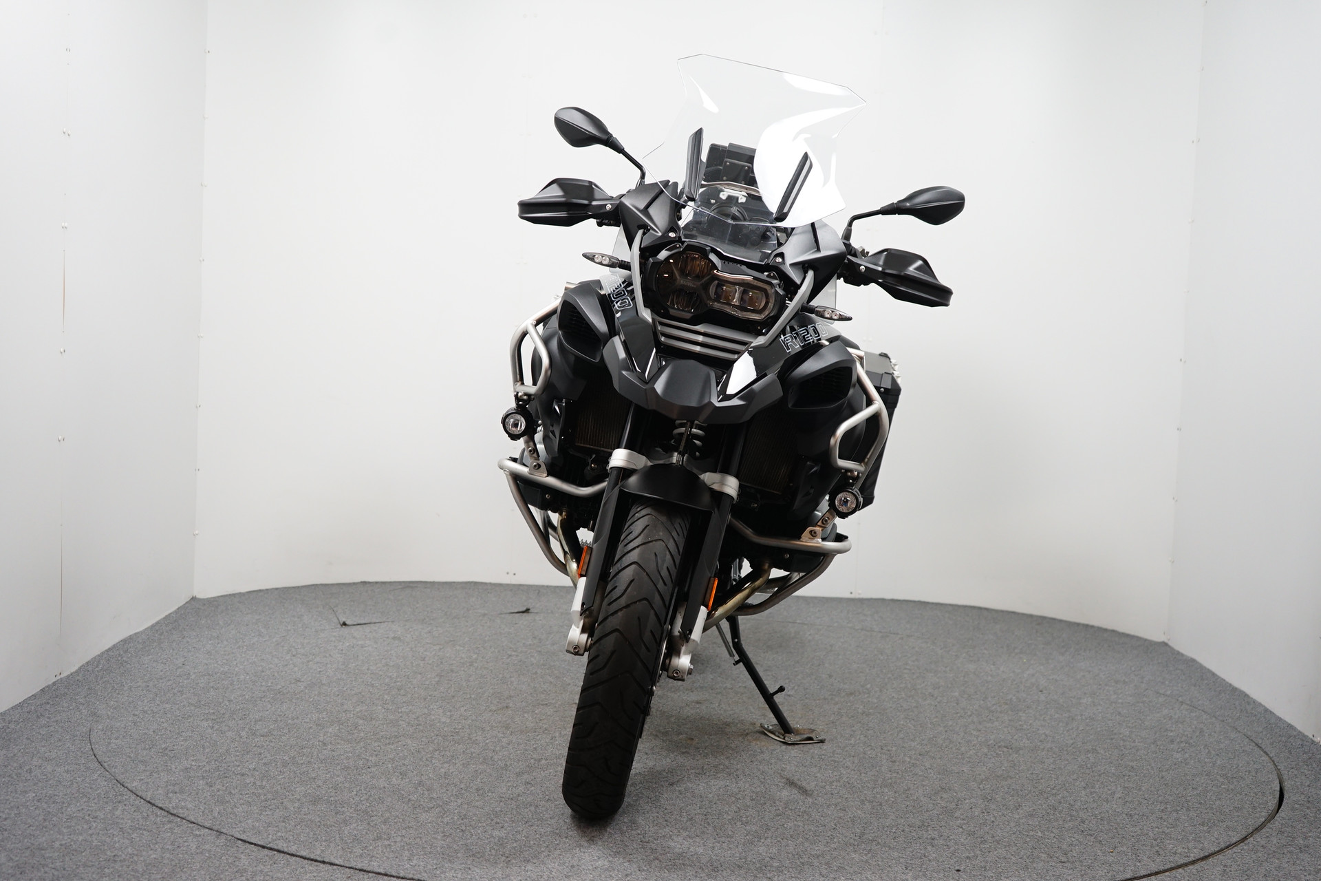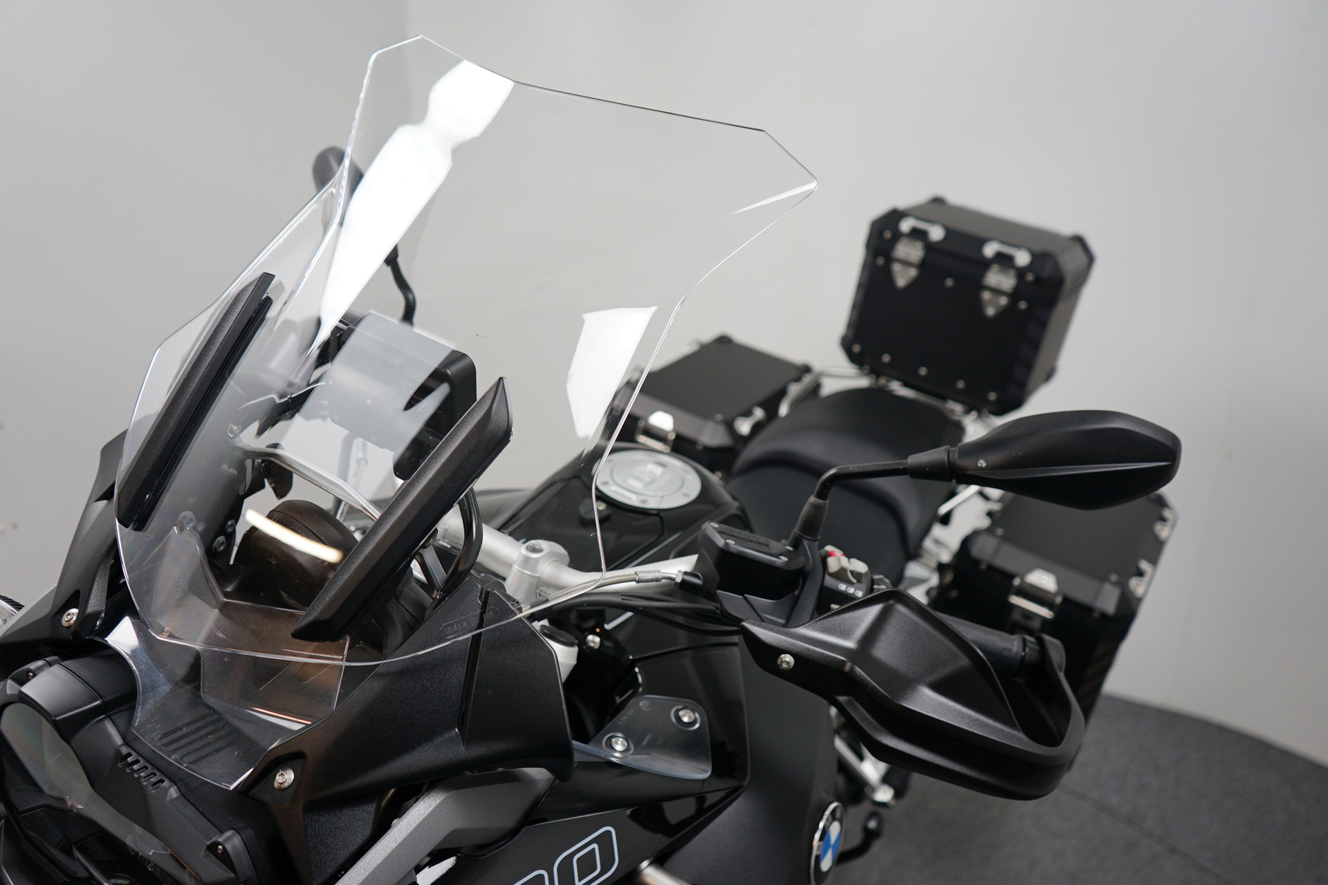 Een in prachtstaat verkerende BMW R 1250 GS ADVENTURE Triple Black ABS met 3-delige kofferset, ABS, Middenbok, Valbeugels, Mistlampen, ESA, Handvatverwarming, Cruise Control, Rij-modi, Navigatiesysteem BMW en Handkappen.