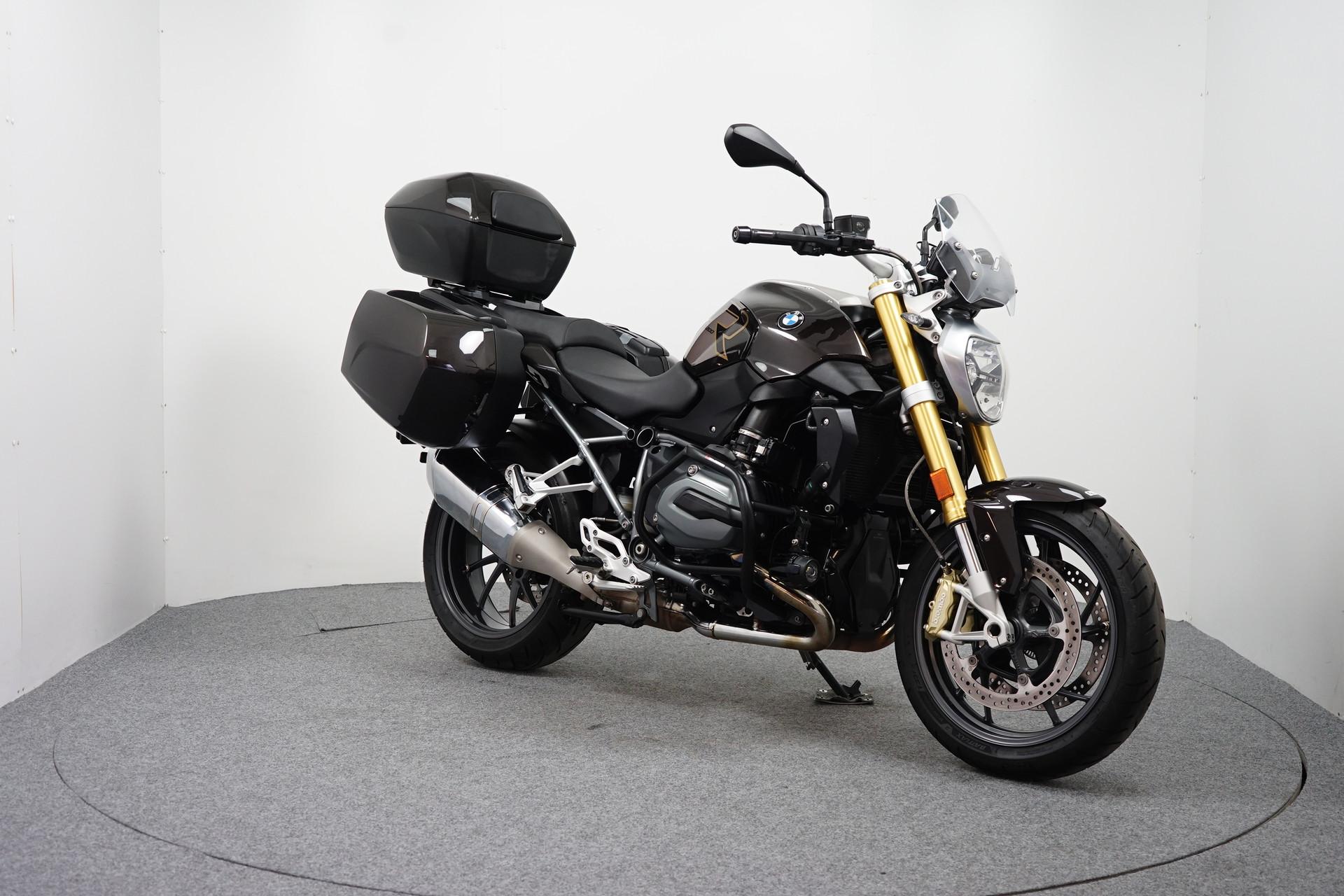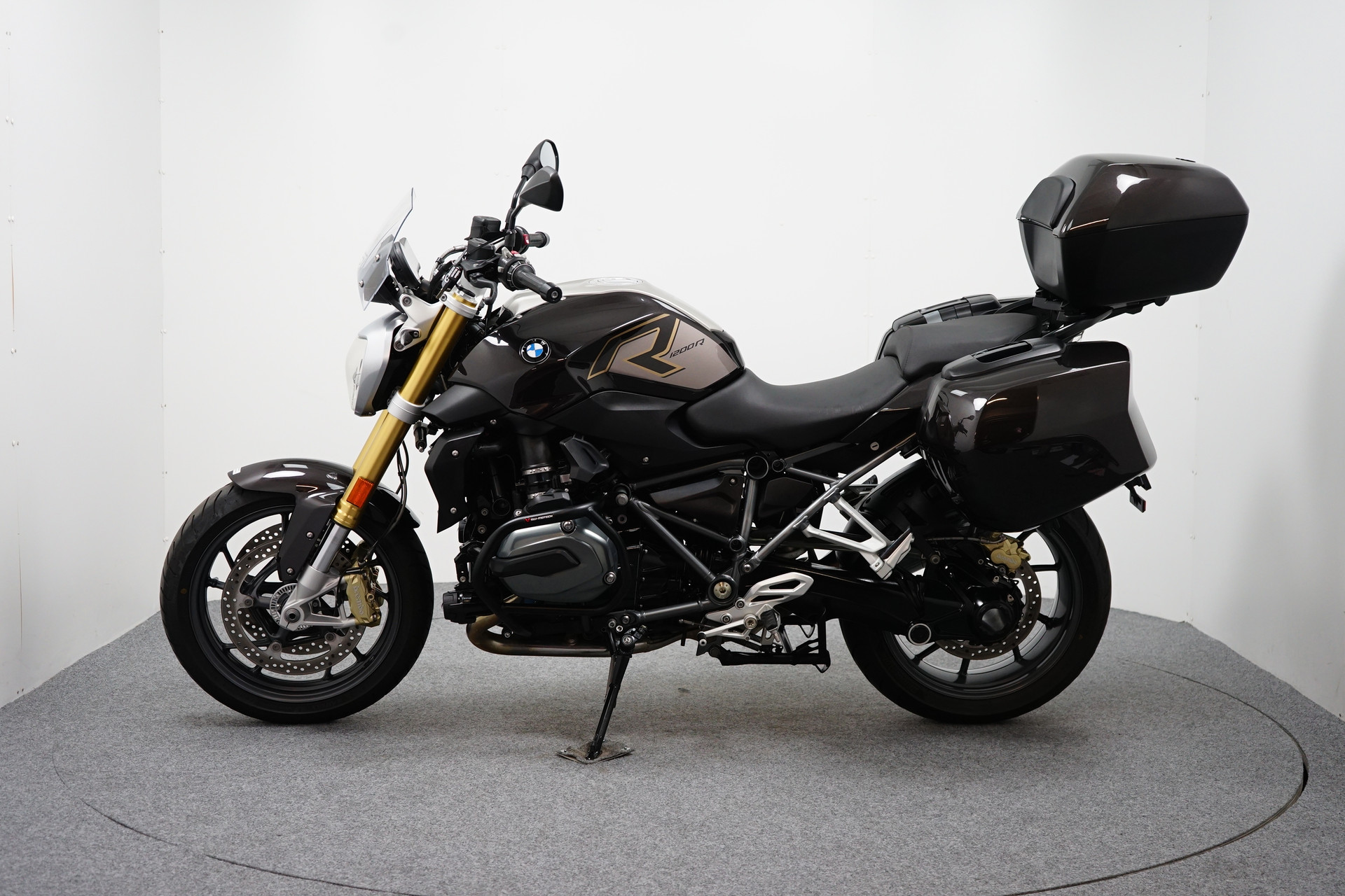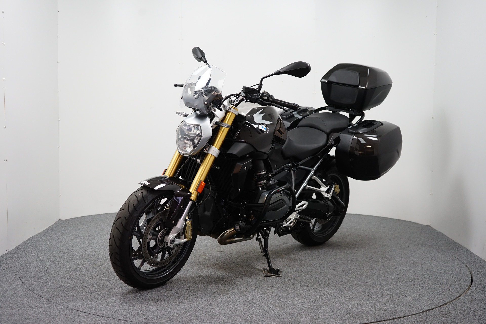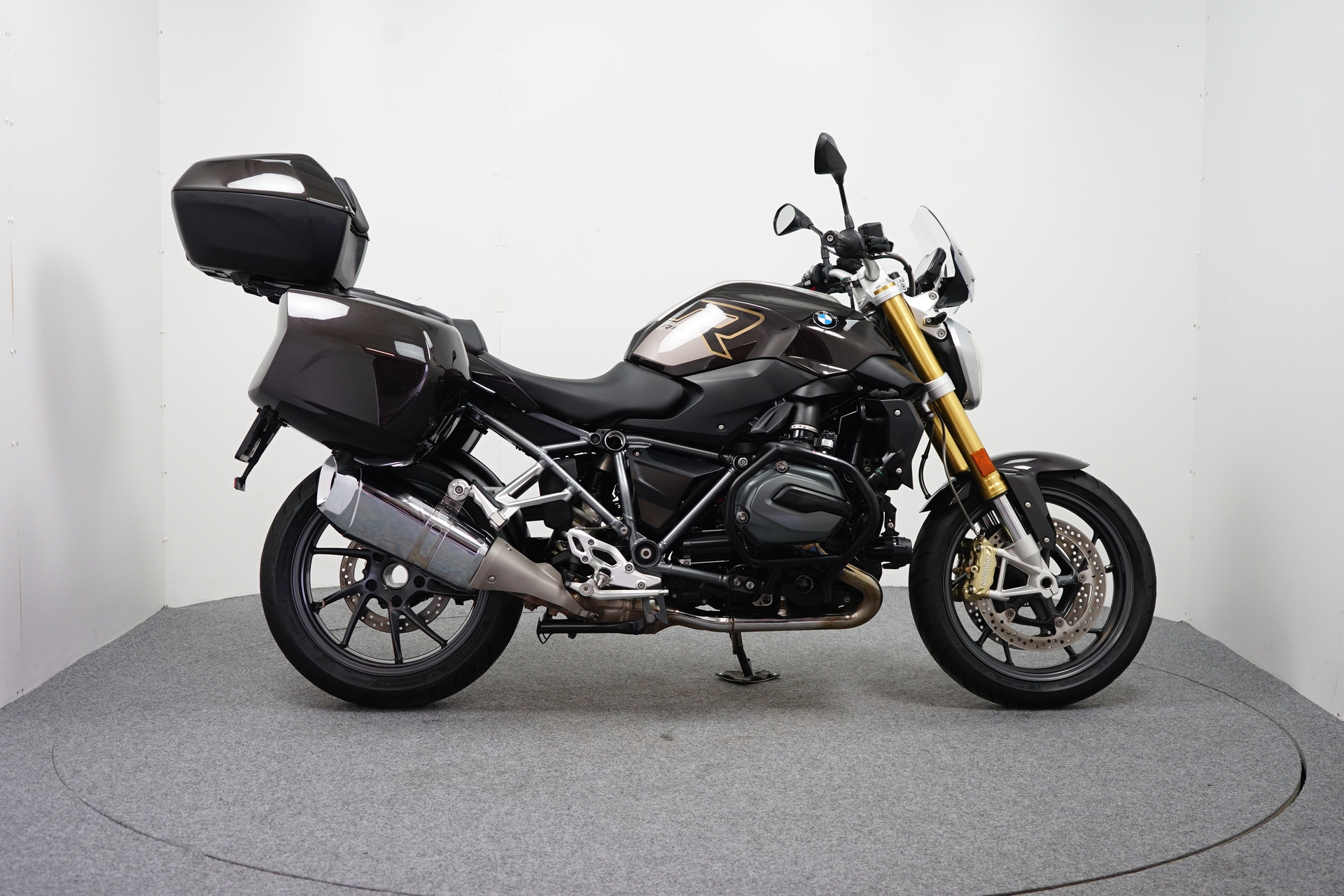Een in zeer mooie staat verkerende BMW R 1200 R ABS met 3-delige Kofferset, Valbeugel, Cruise Control, Instelbare Rij-modi, Handvatverwarming, Verstralerset, ESA en Keyless Ride.