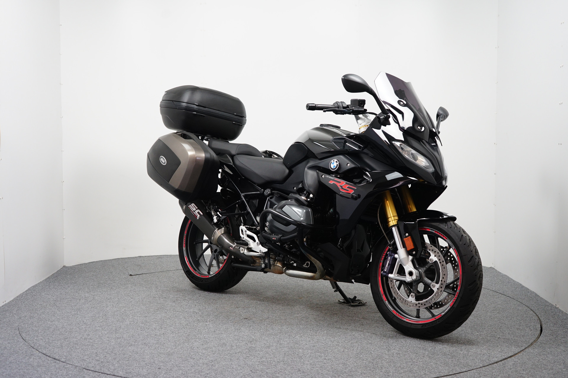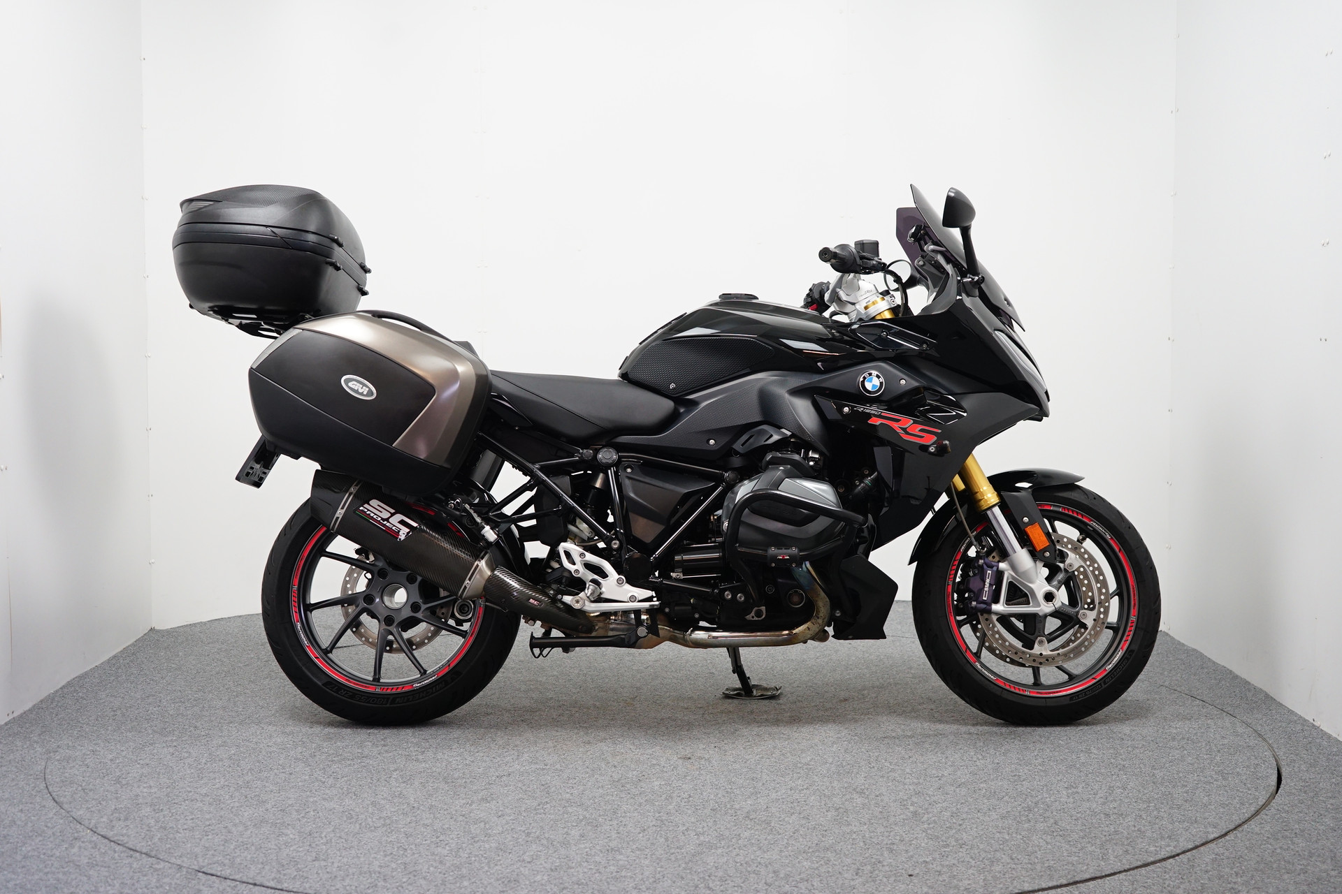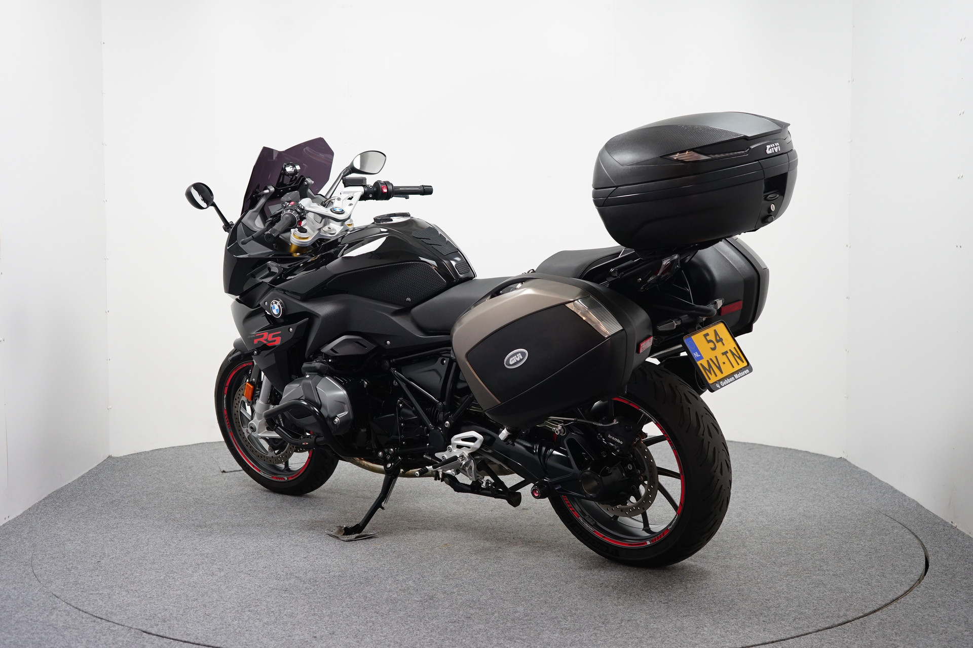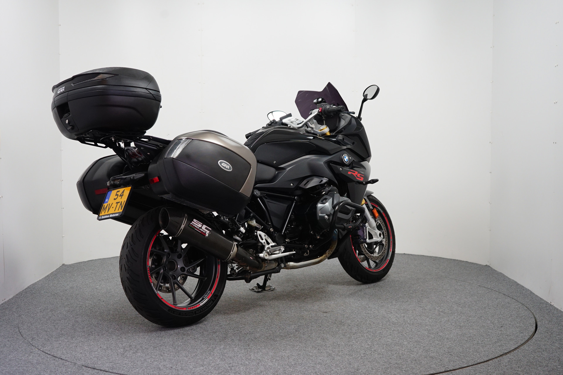 Een in Prachtstaat verkerende BMW R 1250 RS ABS met TCS, Keyless Ride, Rij-modi Pro, ESA, Givi Kofferset, Topkoffer, Valbeugel, Navigatiehouder, Valdoppen, Tankpad, Tank Grips, Tank ring, Cruise Control, Quickshifter, Handvatverwarming en een SC uitlaatdemper.