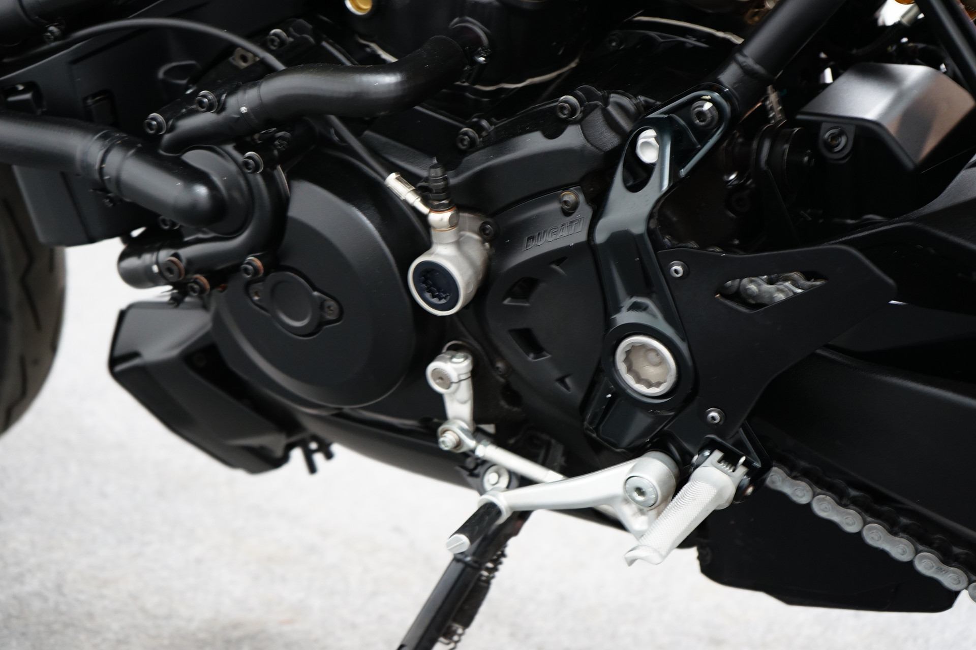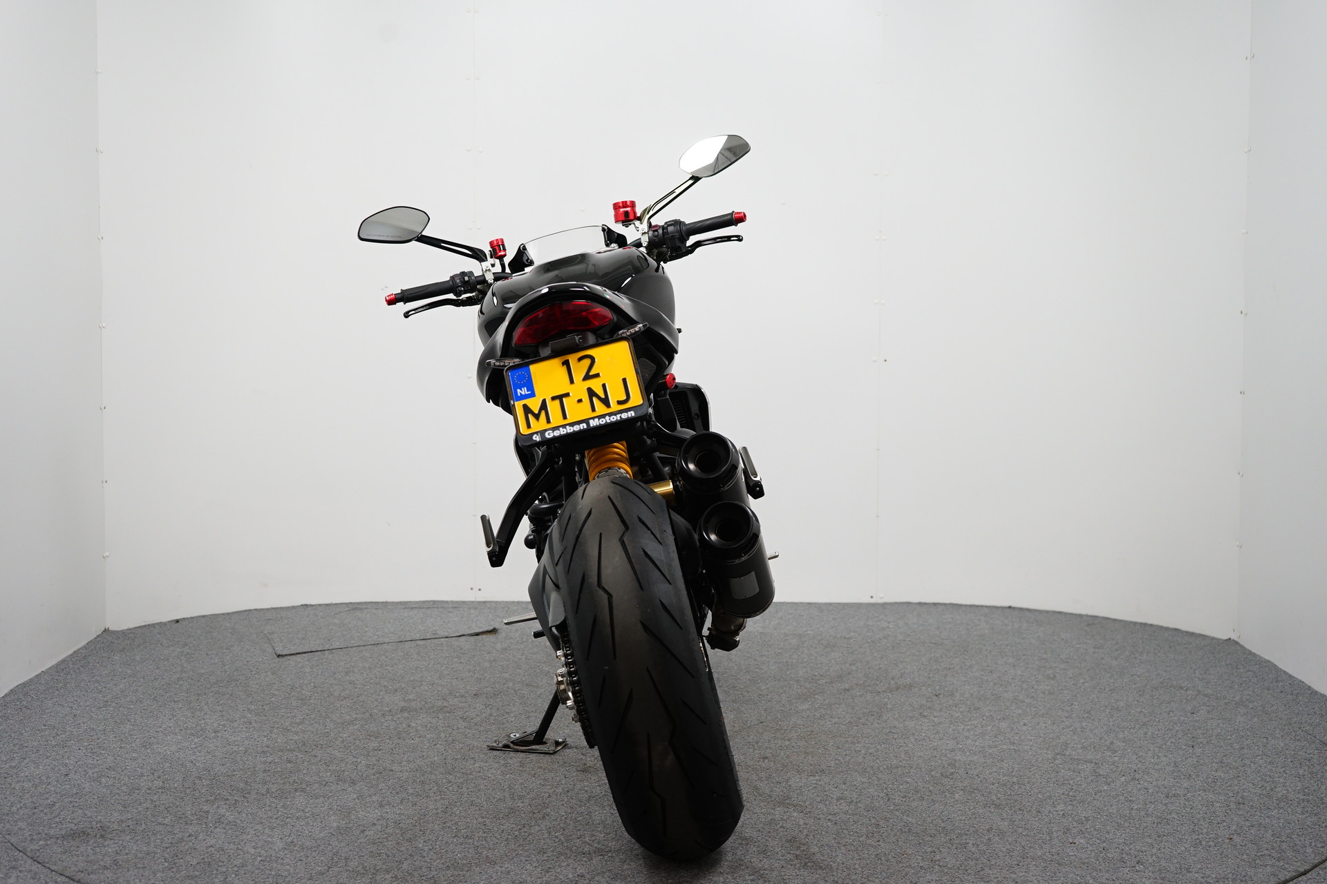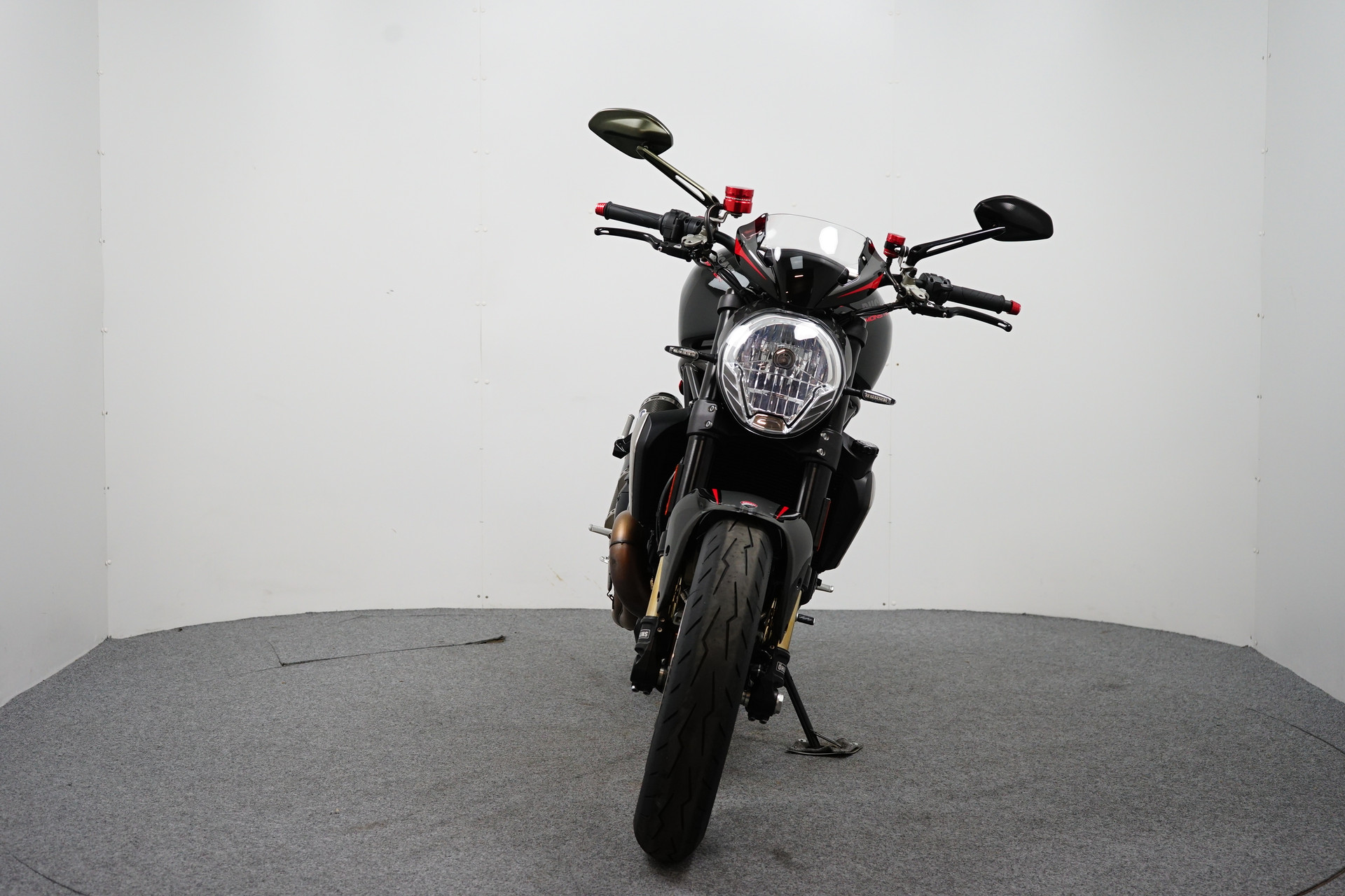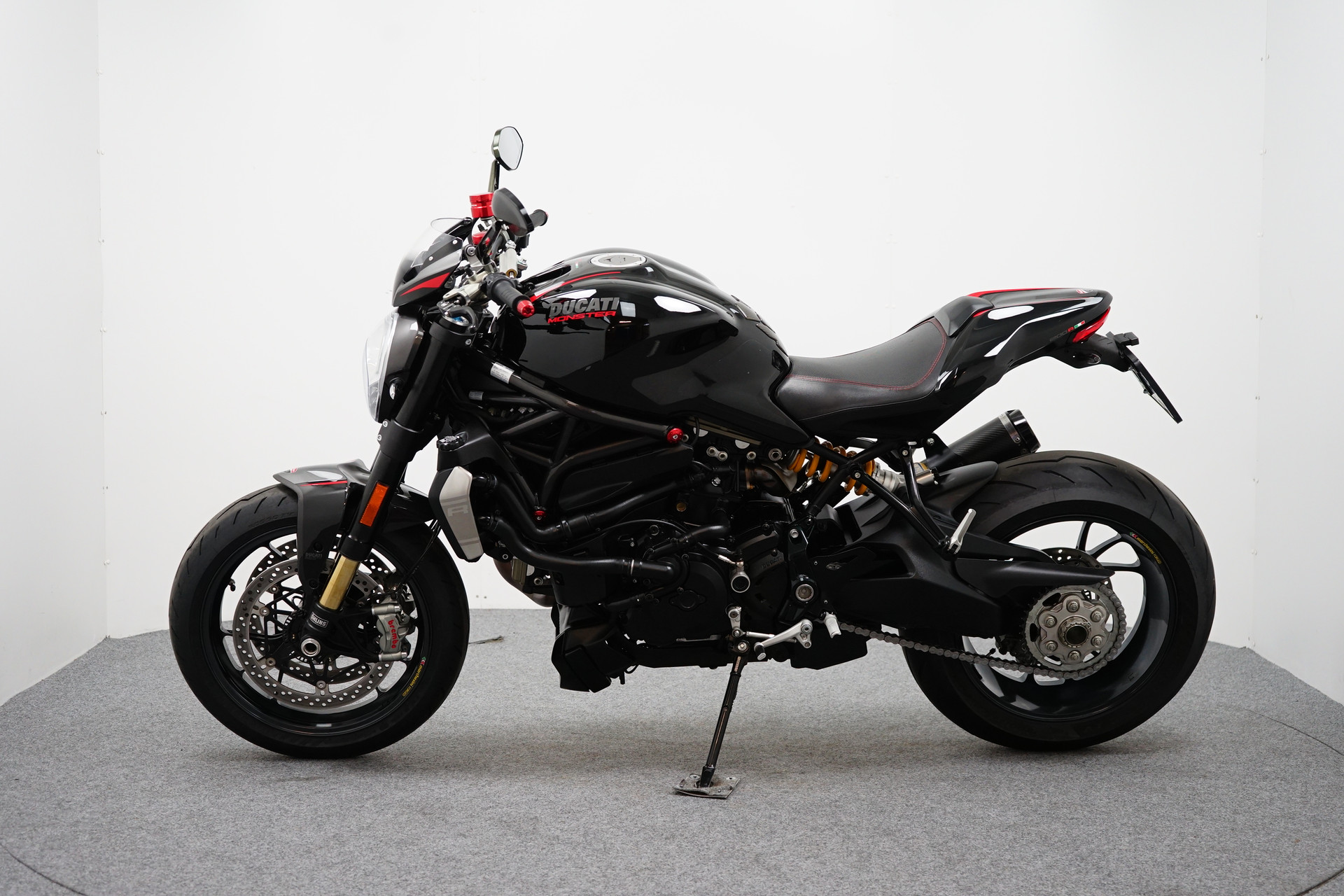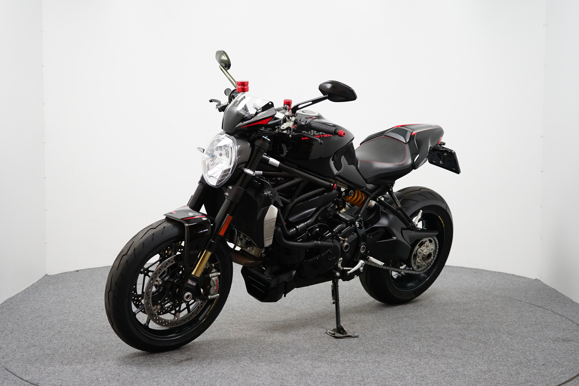 Een in prachtstaat verkerende Ducati Monster 1200 R met Termignoni uitlaatsysteem, Seat Cover, Tankpad, Korte kentekenplaathouder, Led knipperlichten en Stuurdemper.