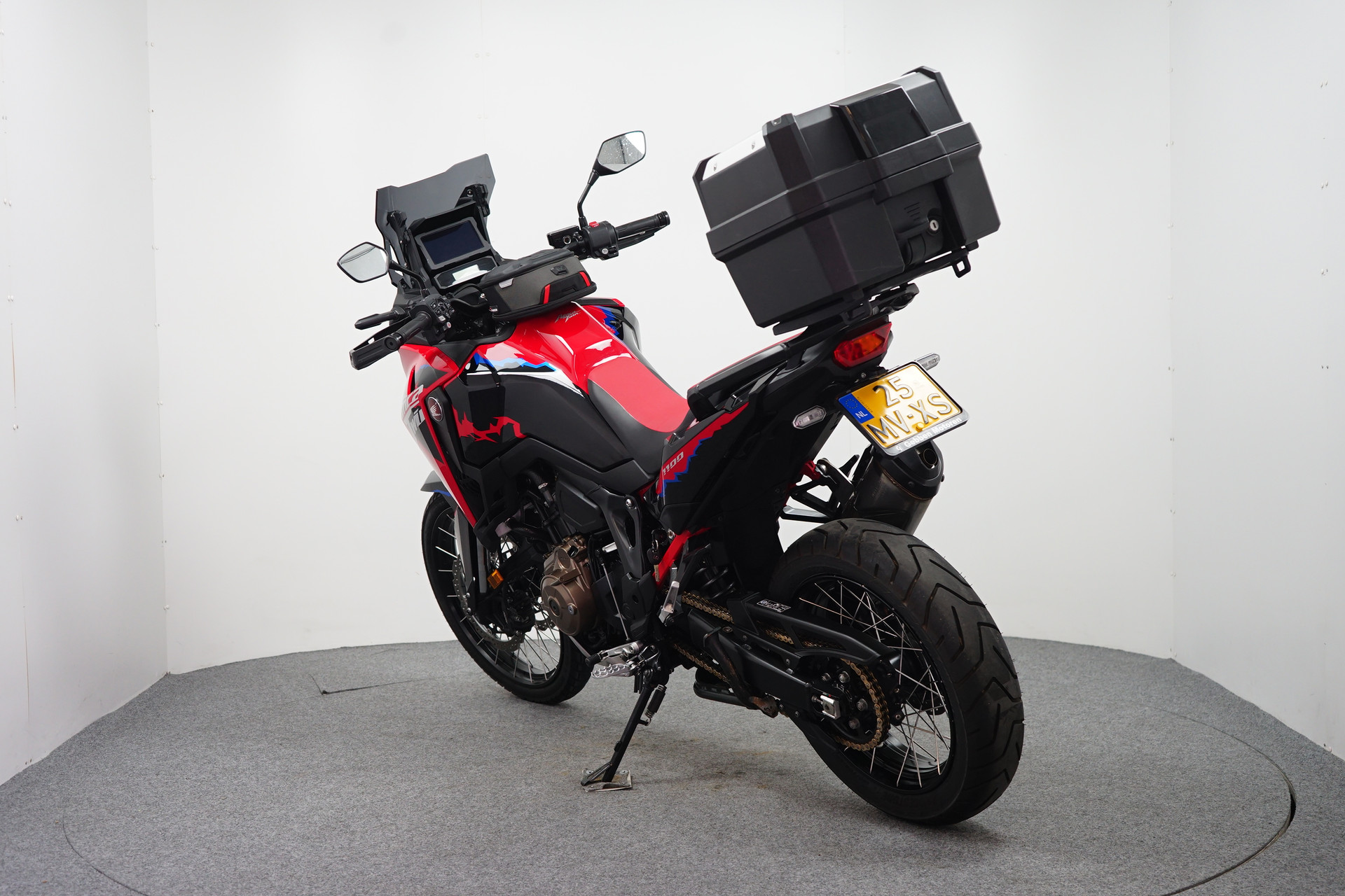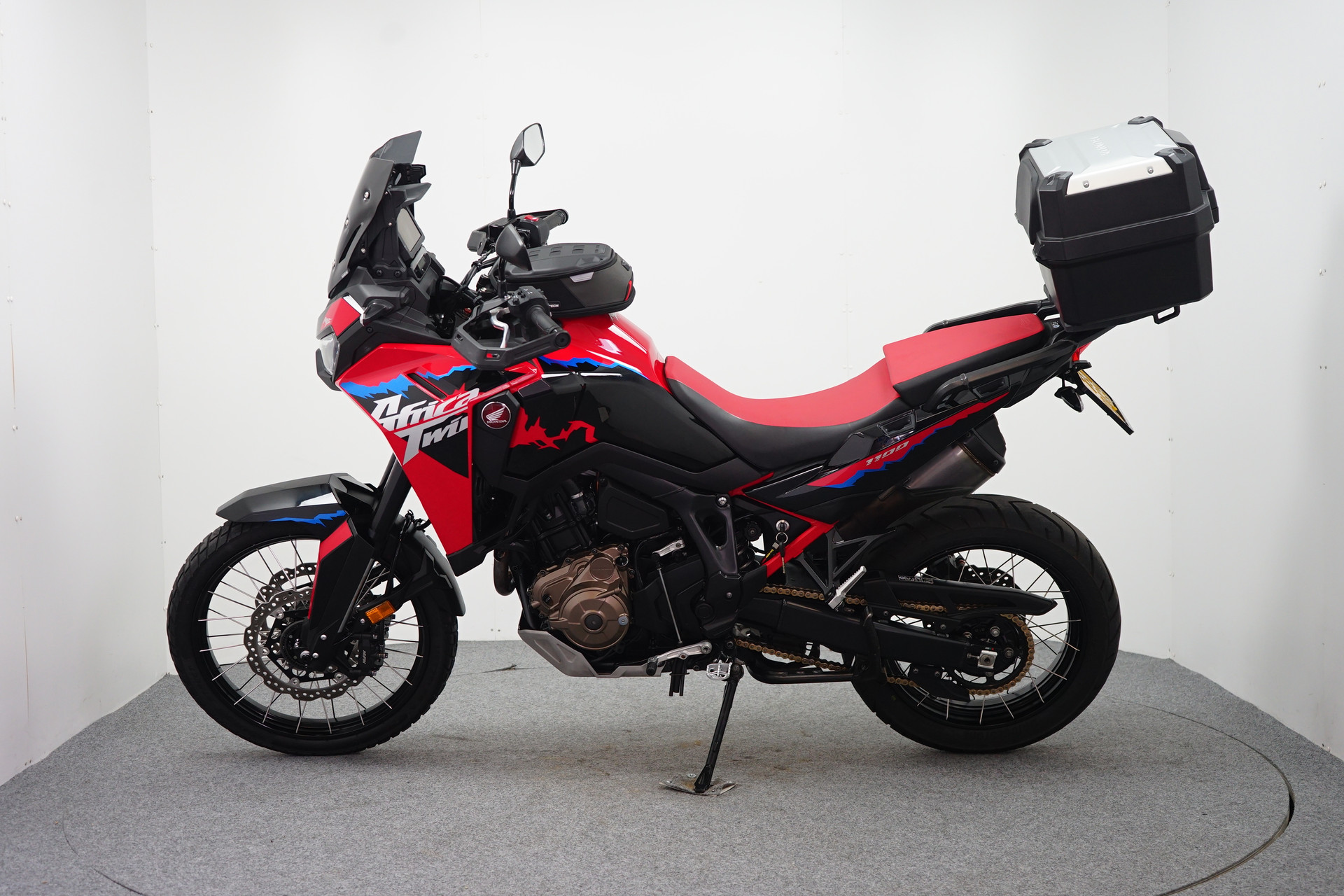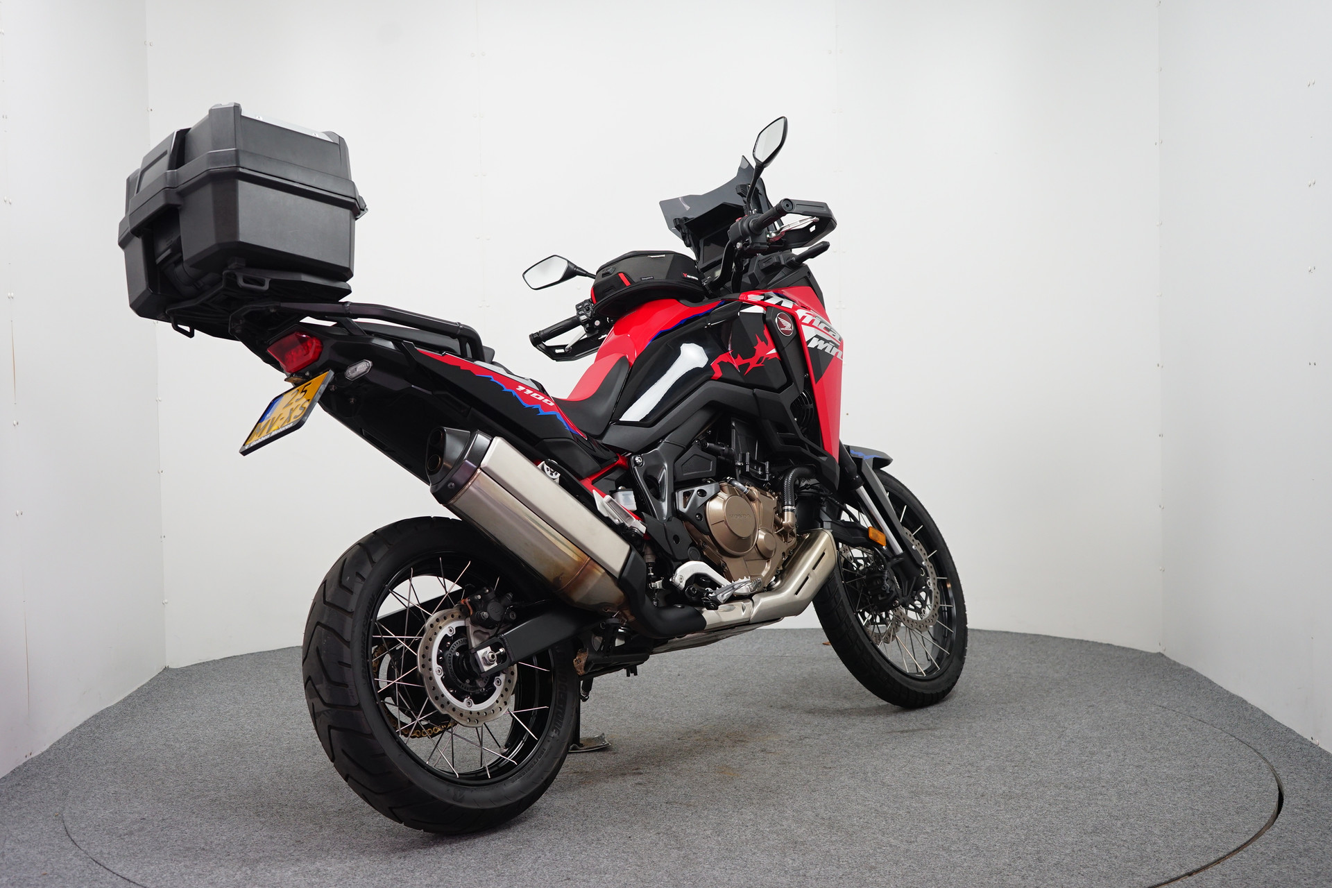 Een in zeer mooie staat verkerende en complete Honda CRF 1100 ABS Afrika Twin met Korte kentekenplaathouder, Tanktas met Tankring, Middenbok, Cruise Control en donker WRS sport windscherm.