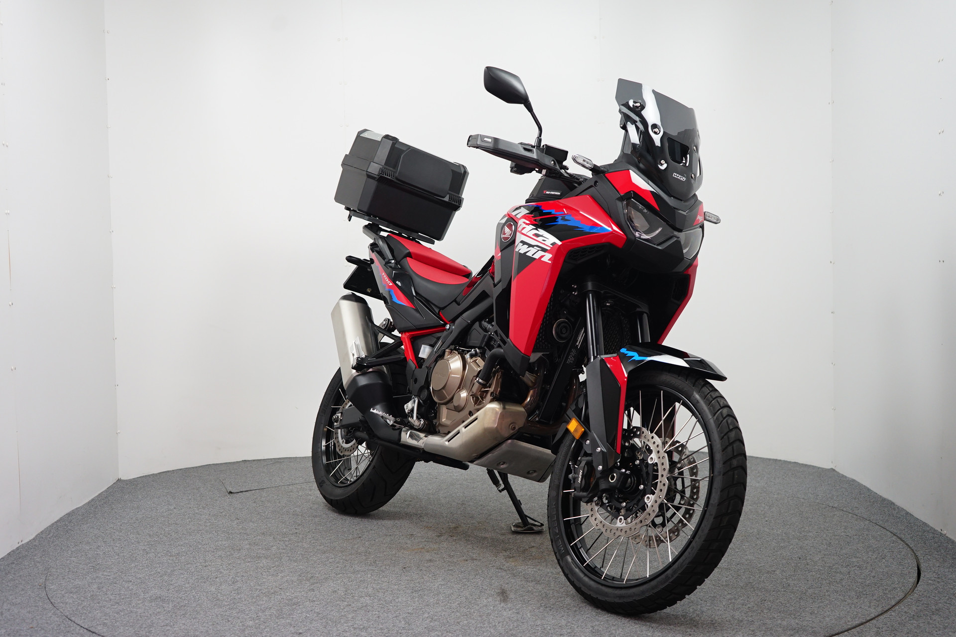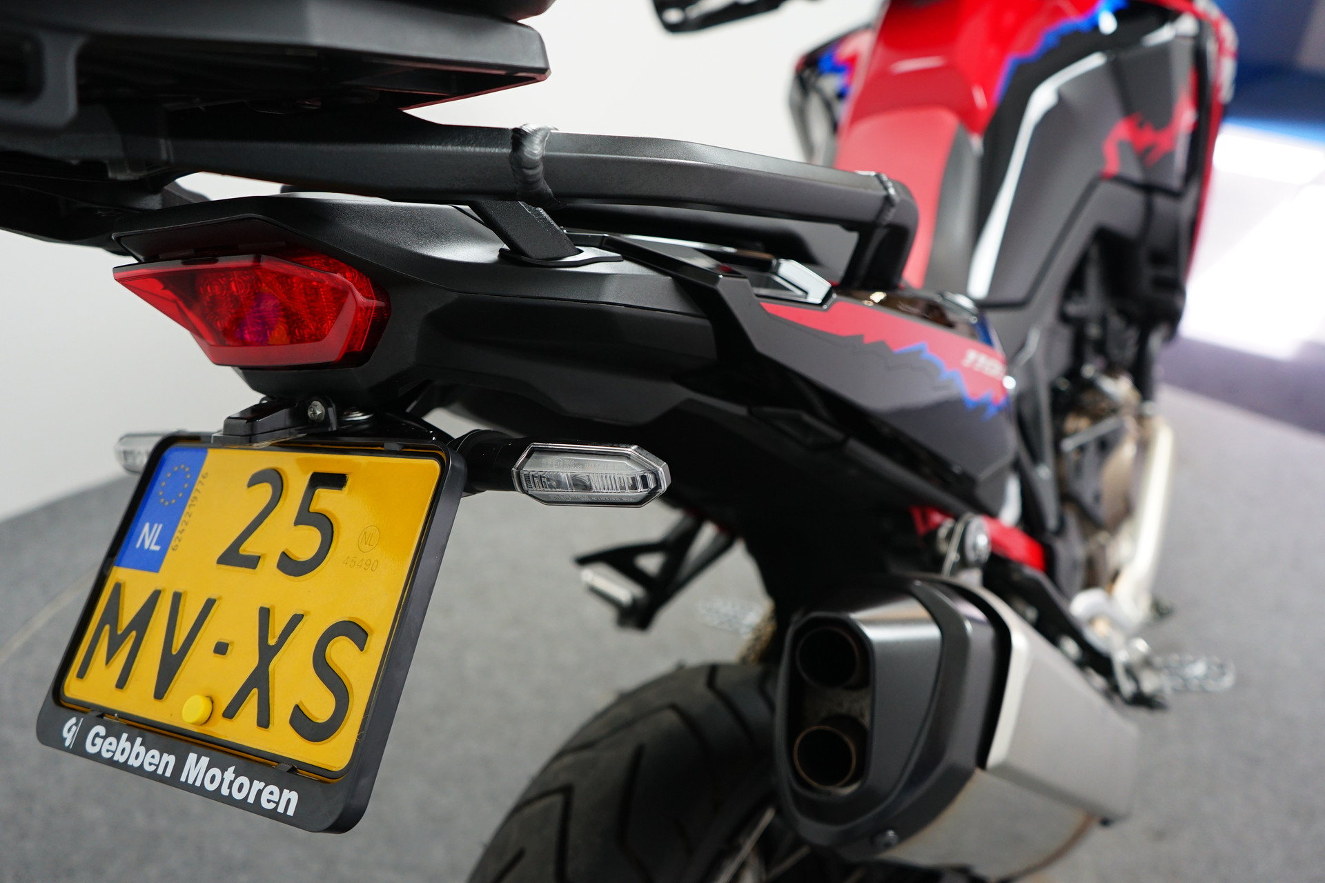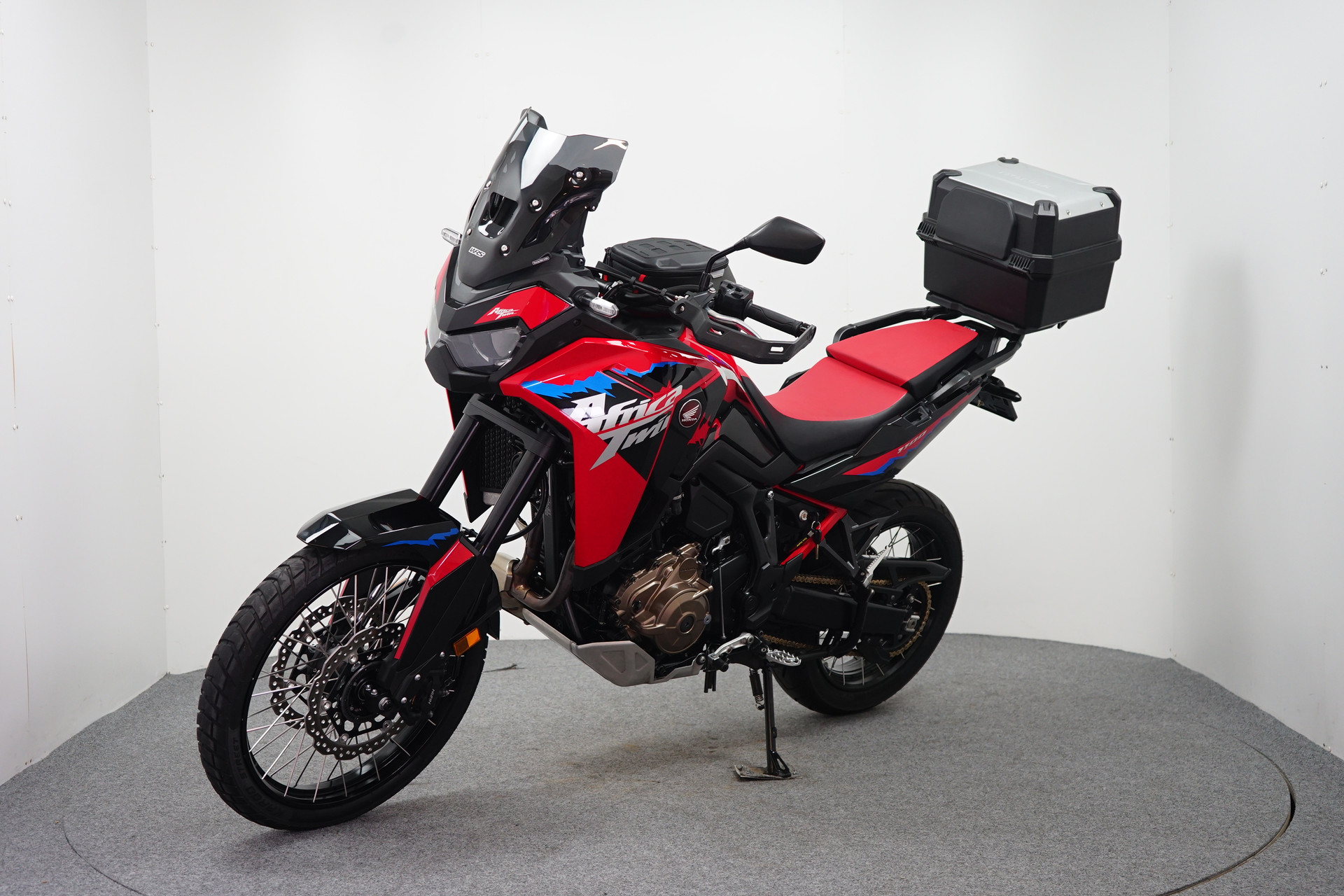 Een in zeer mooie staat verkerende en complete Honda CRF 1100 ABS Afrika Twin met Korte kentekenplaathouder, Tanktas met Tankring, Middenbok, Cruise Control en donker WRS sport windscherm.