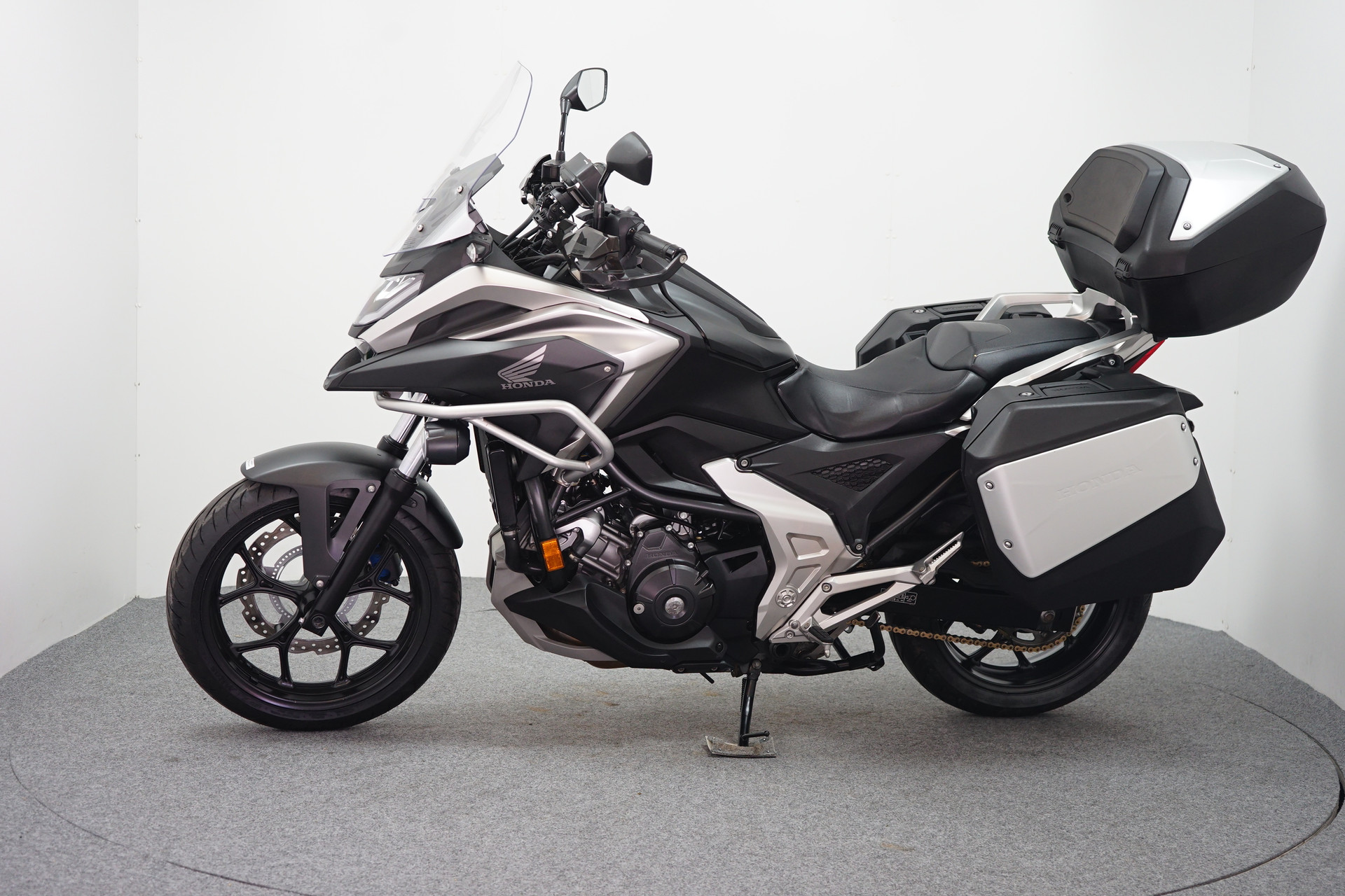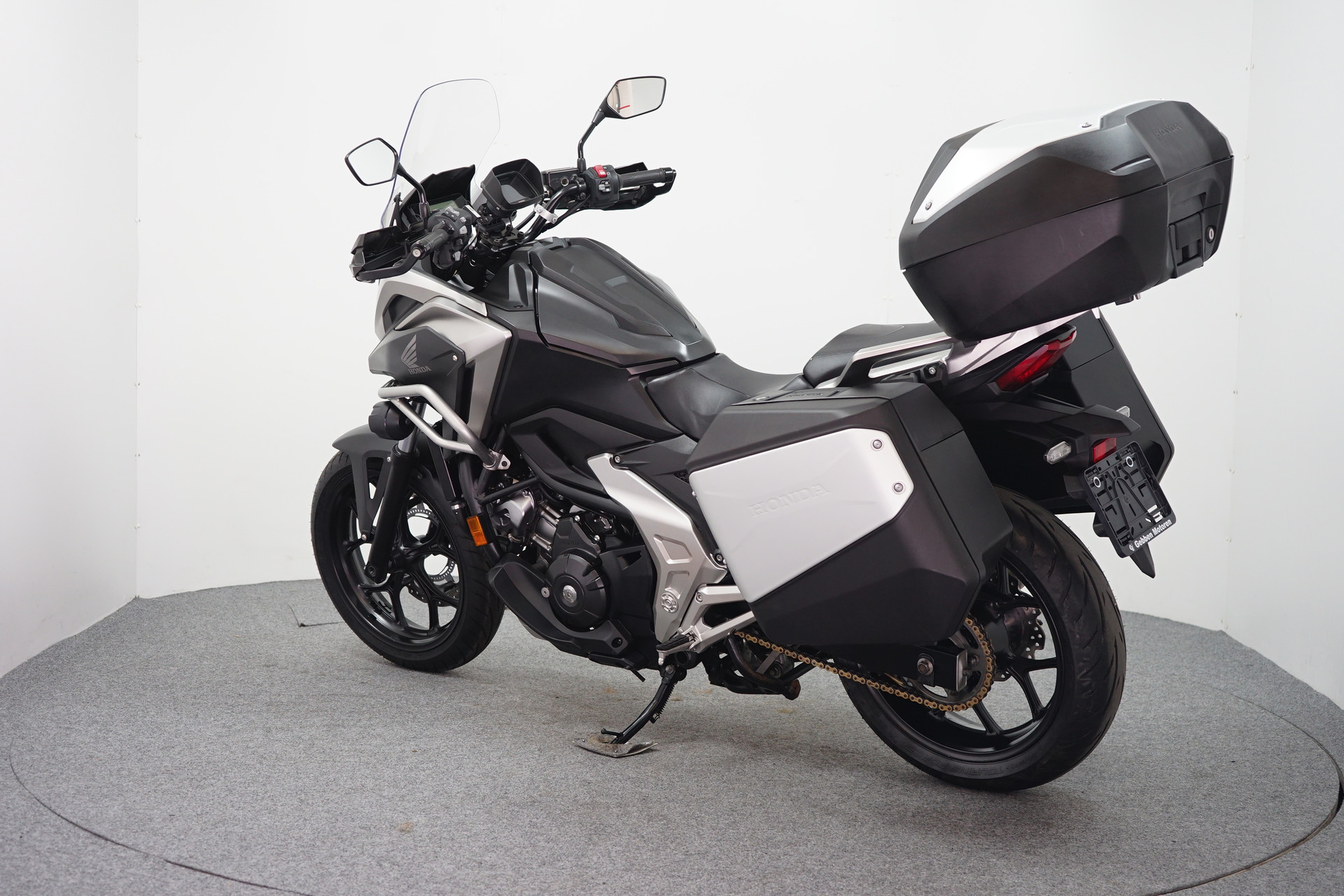 GOED ONDERHOUDEN HONDA NC750X DCT MET ABS, TCS,HANDVATVERWARMING, HANDKAPPENSET, VALBEUGELSET, MISTLAMPENSET, TOMTOM NAVIGATIE SYSTEEM, KOFFER SET, TOP KOFFER EN AUTOMATISCH KETTINGSMEERSYSTEEM.