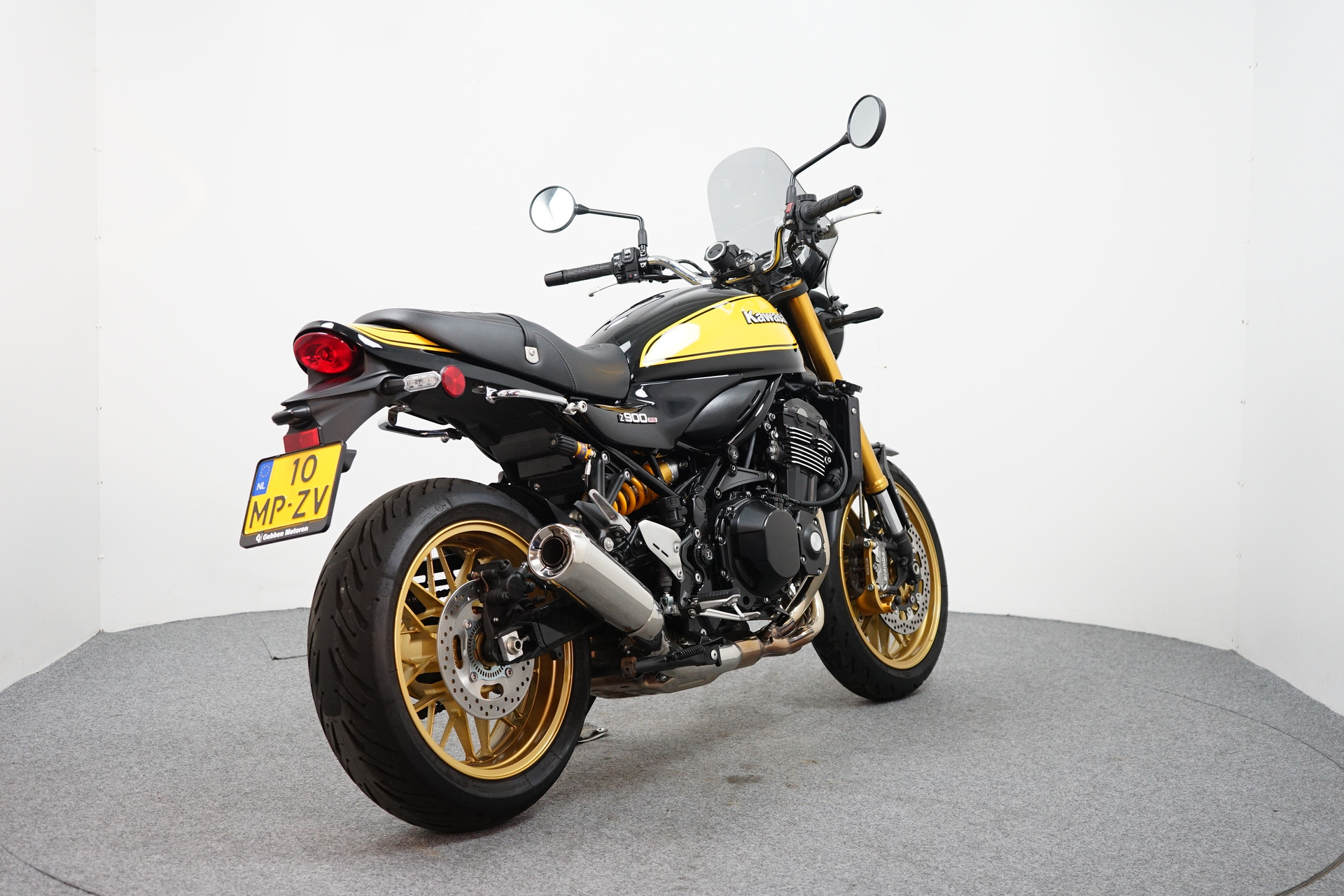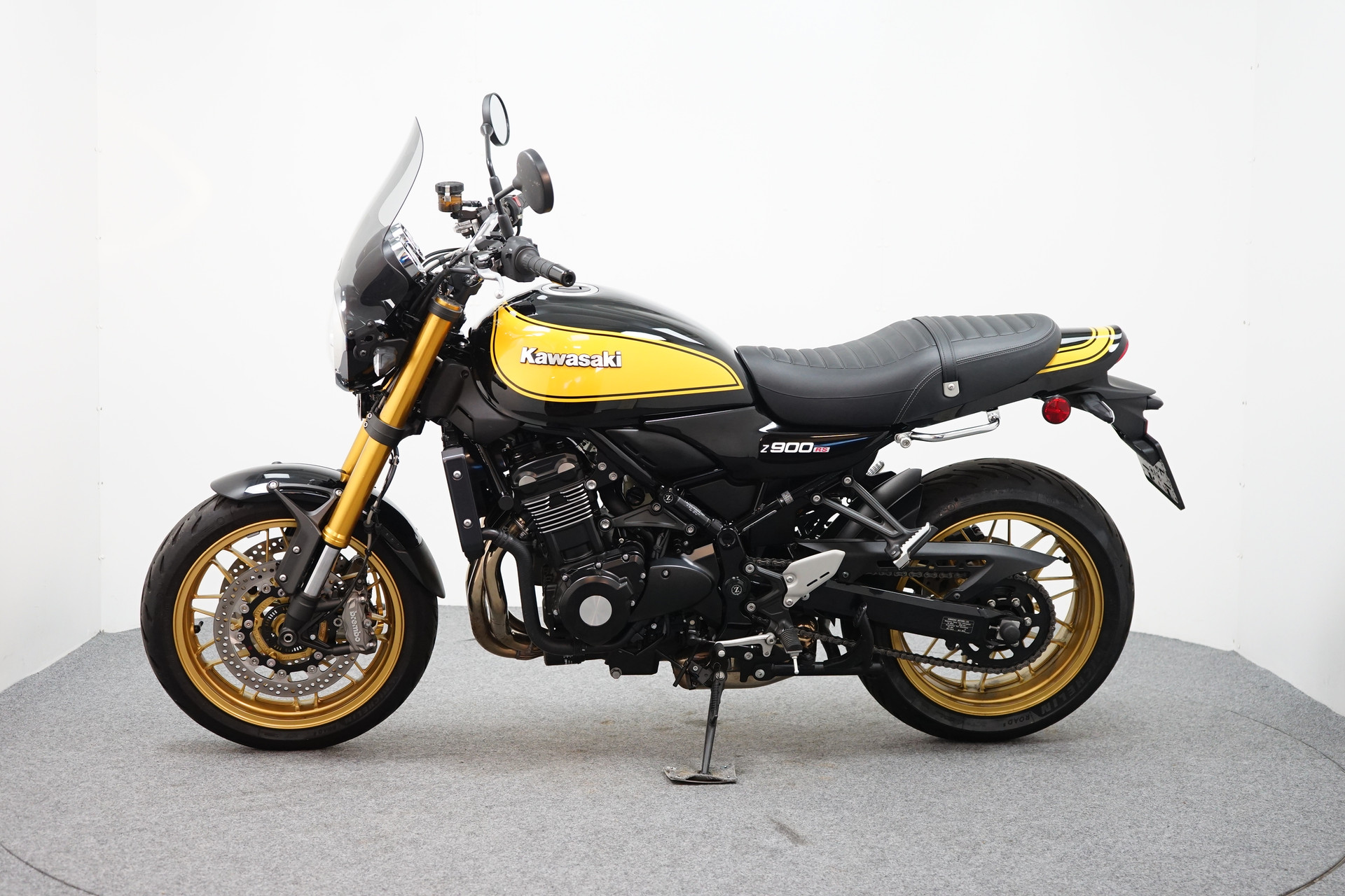 In nieuwstaat verkerende Kawasaki Z900 RS SE voorzien van ABS, middenbok, Ohlins vering, spatbordverlenger (voorzijde) en radiateurbeschermer.
