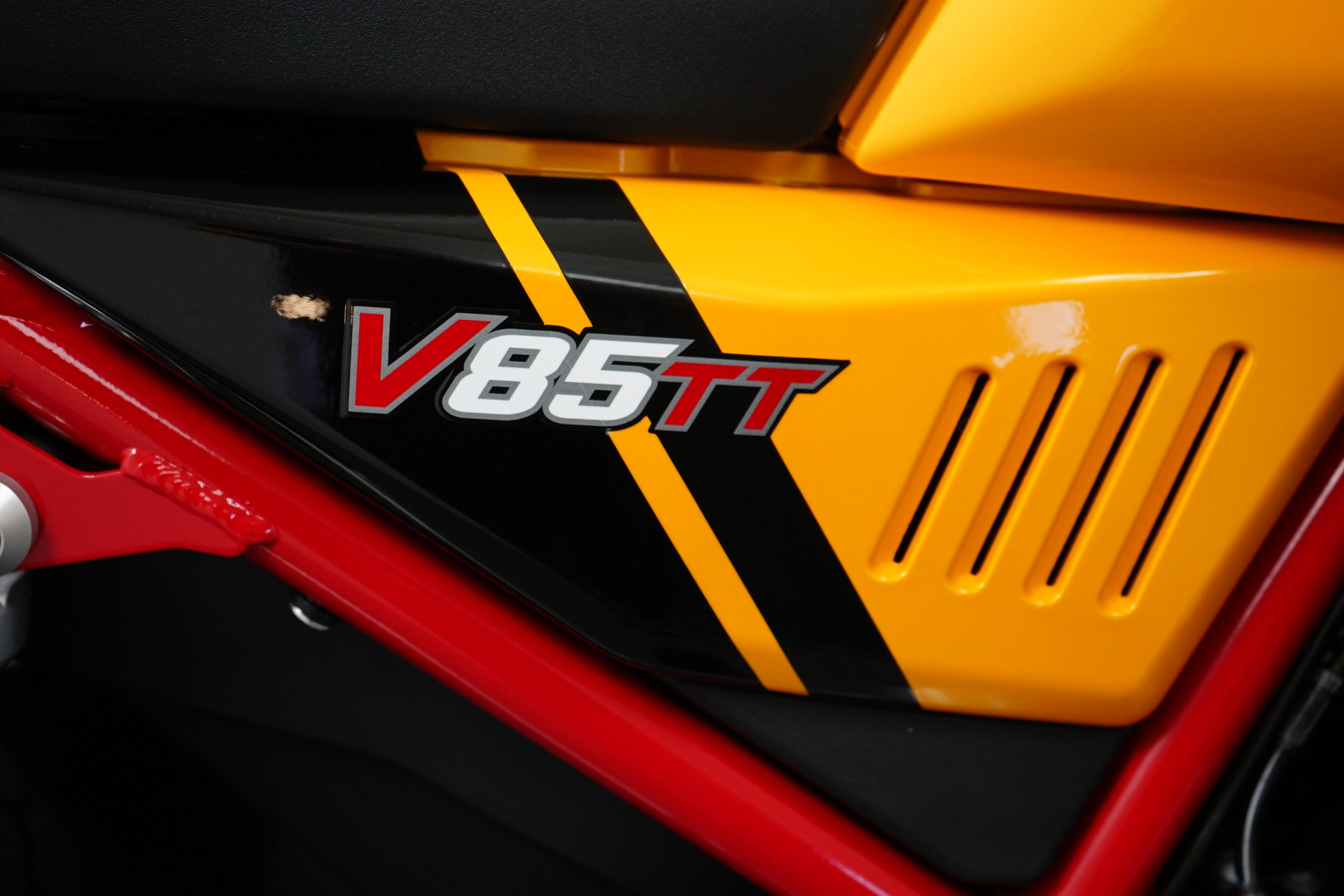 Zeer mooie V 85 TT met valbeugel, winscherm, handkappen, cardan berschermer, middenbok en Quadlock telefoonhouder met draadloos laden.