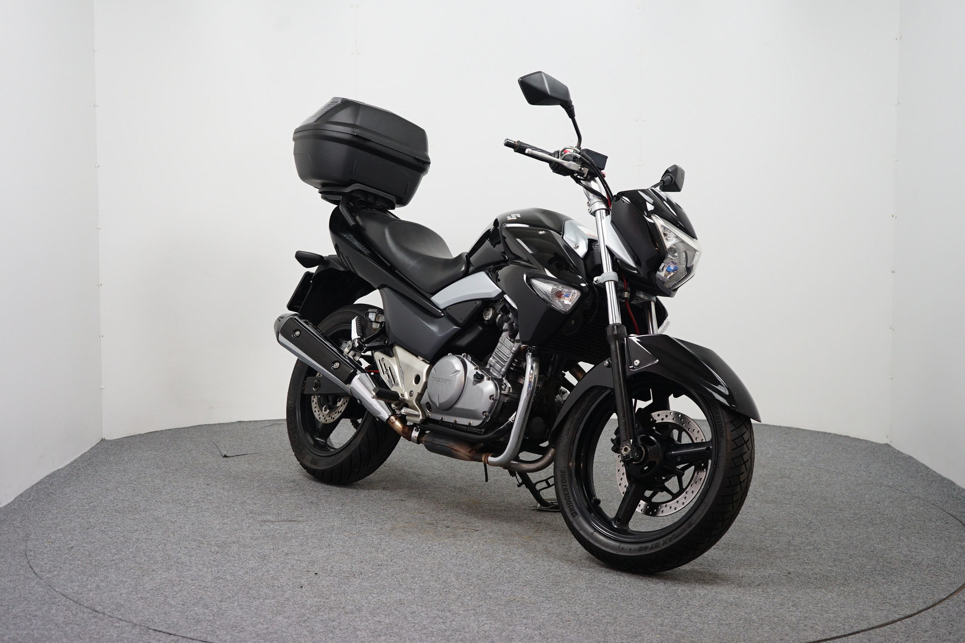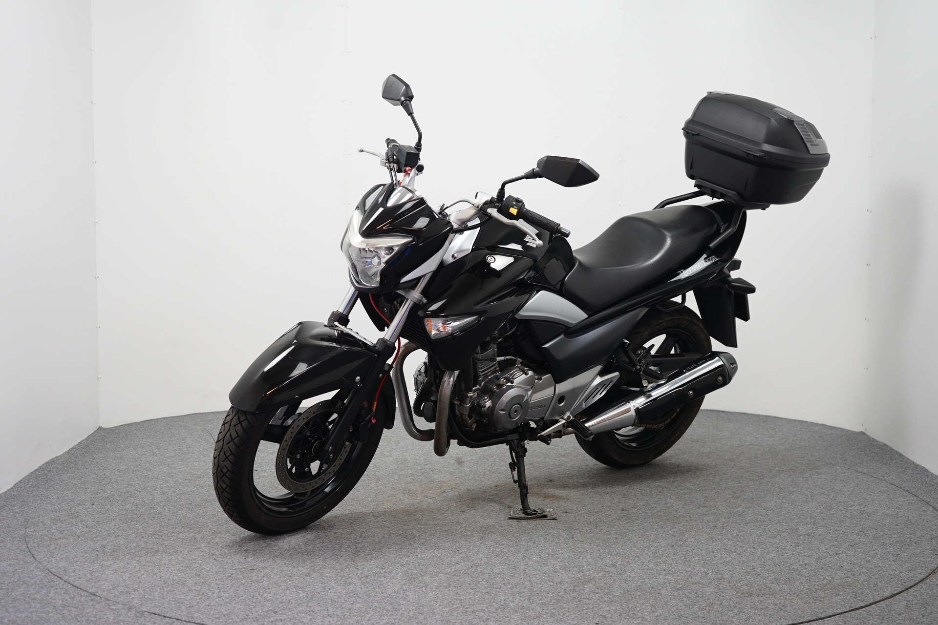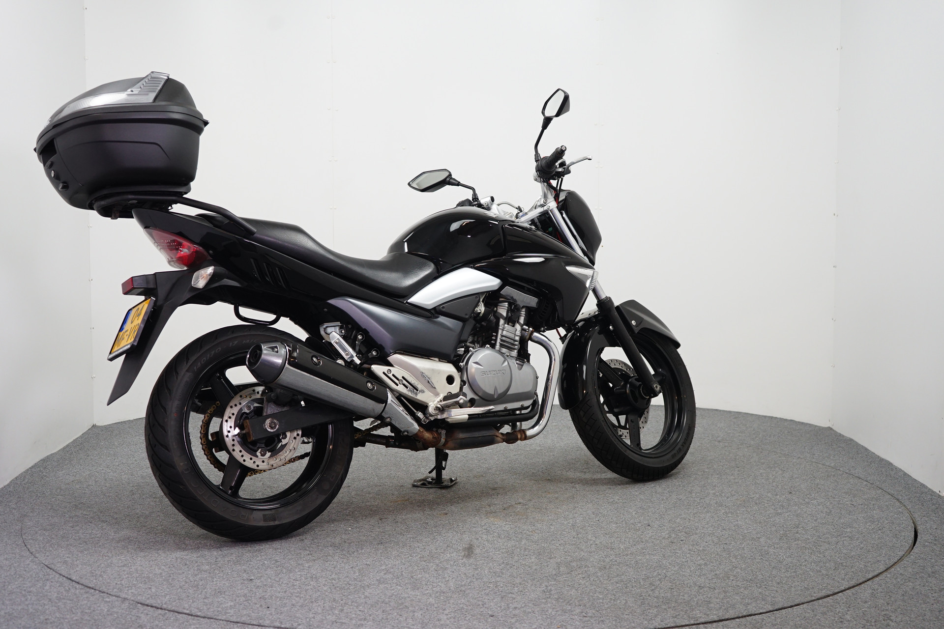 Een in nette staat verkerende Suzuki GW 250 met Topkoffer en Versnelling indicator.