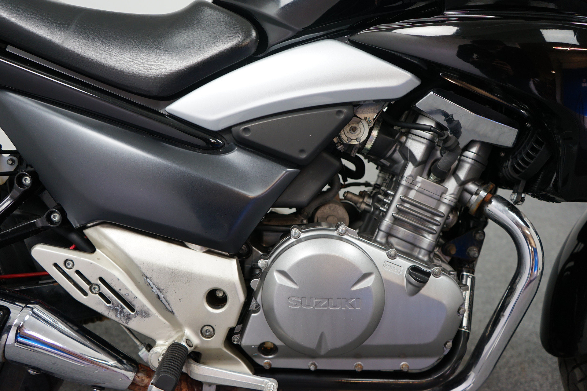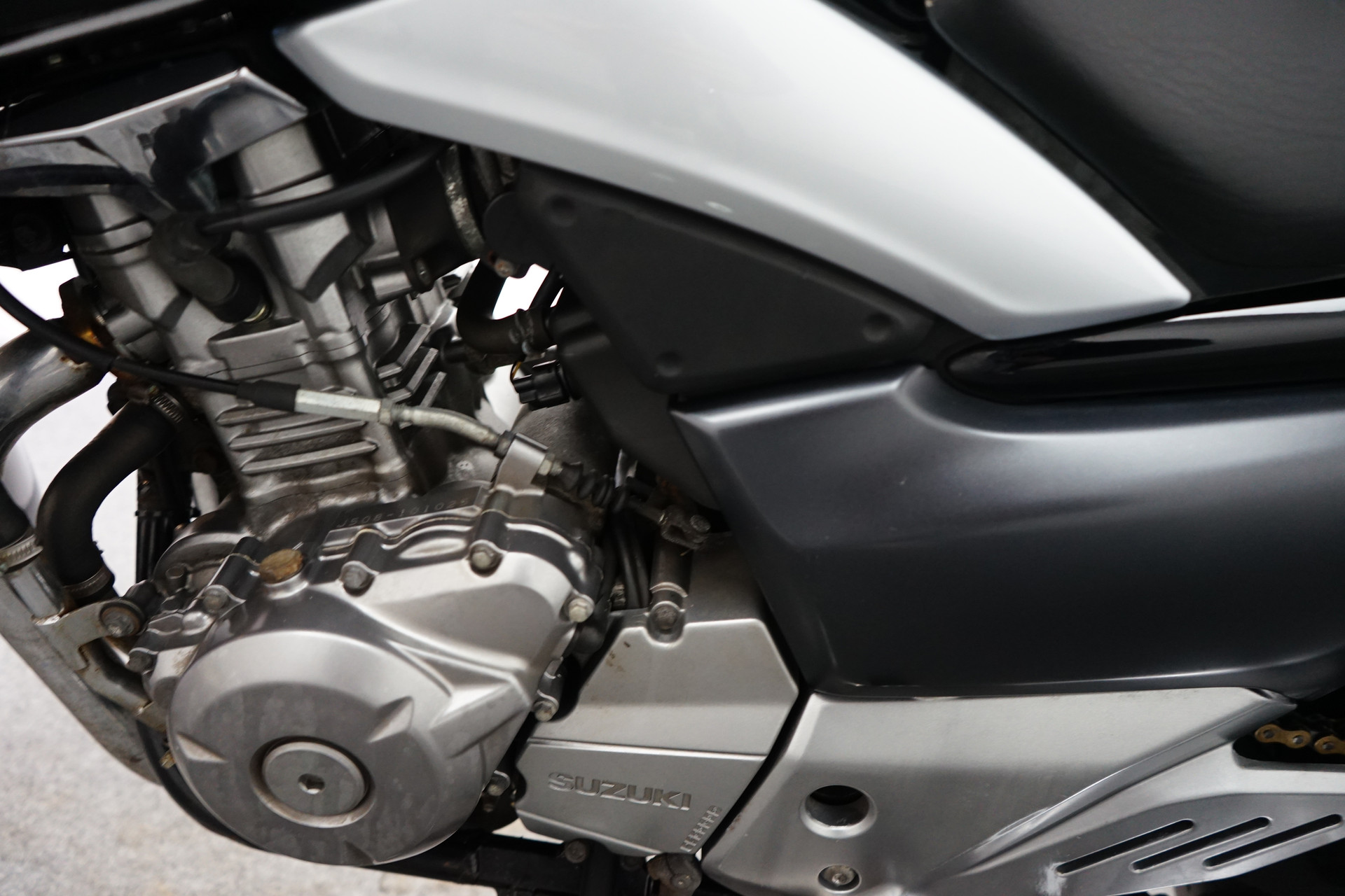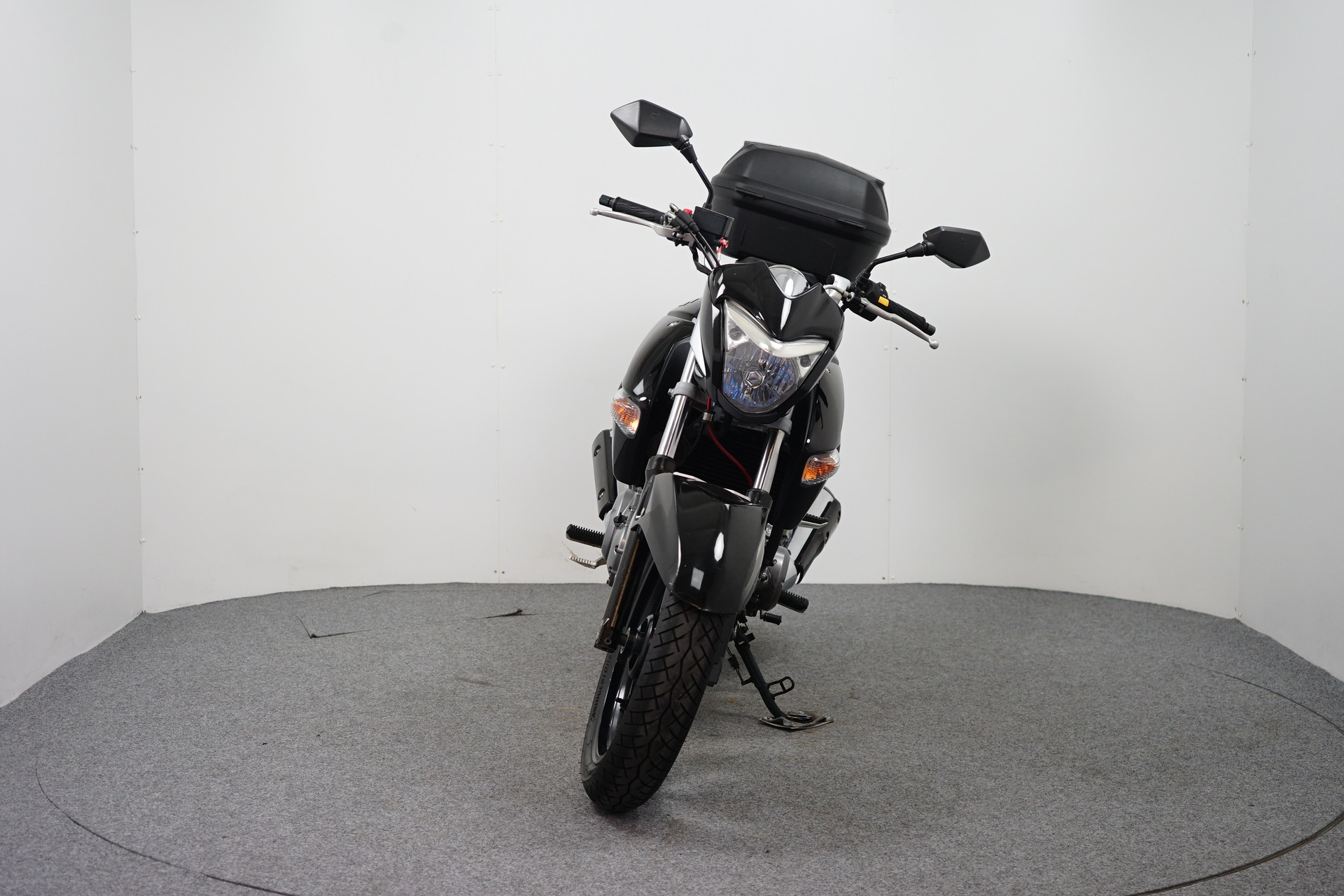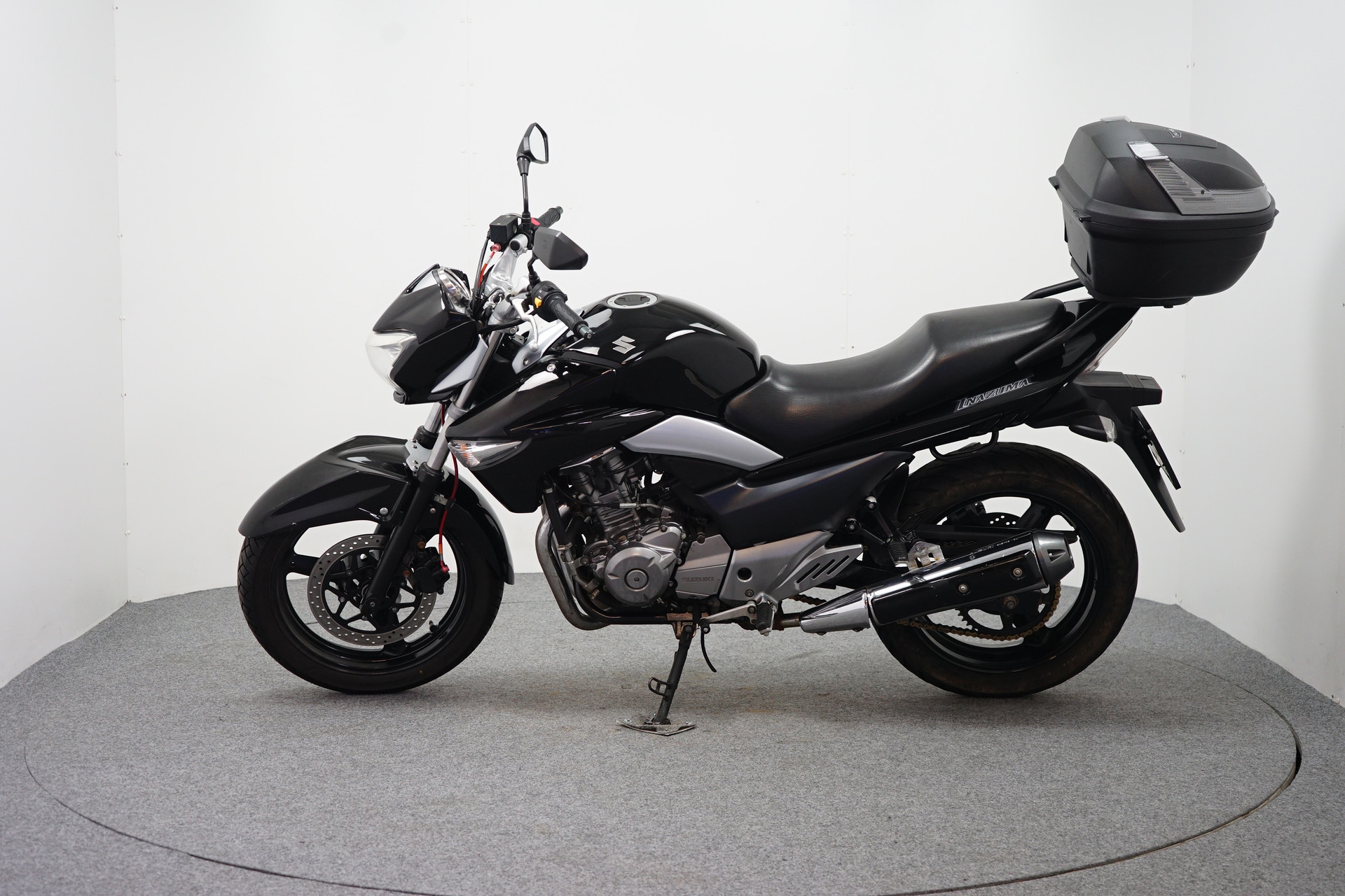 Een in nette staat verkerende Suzuki GW 250 met Topkoffer en Versnelling indicator.