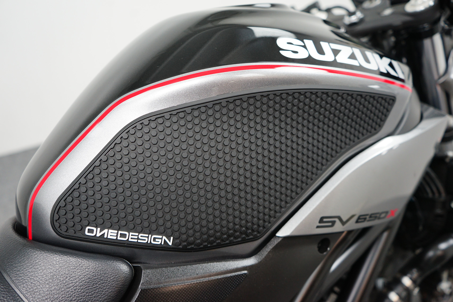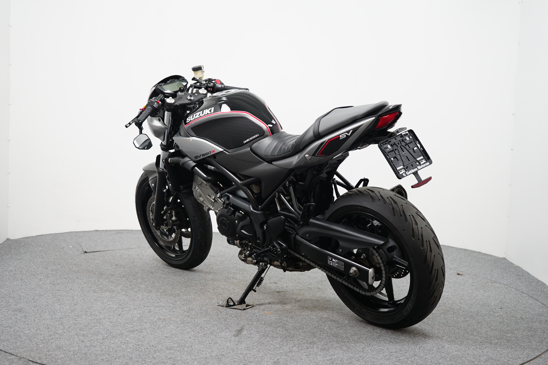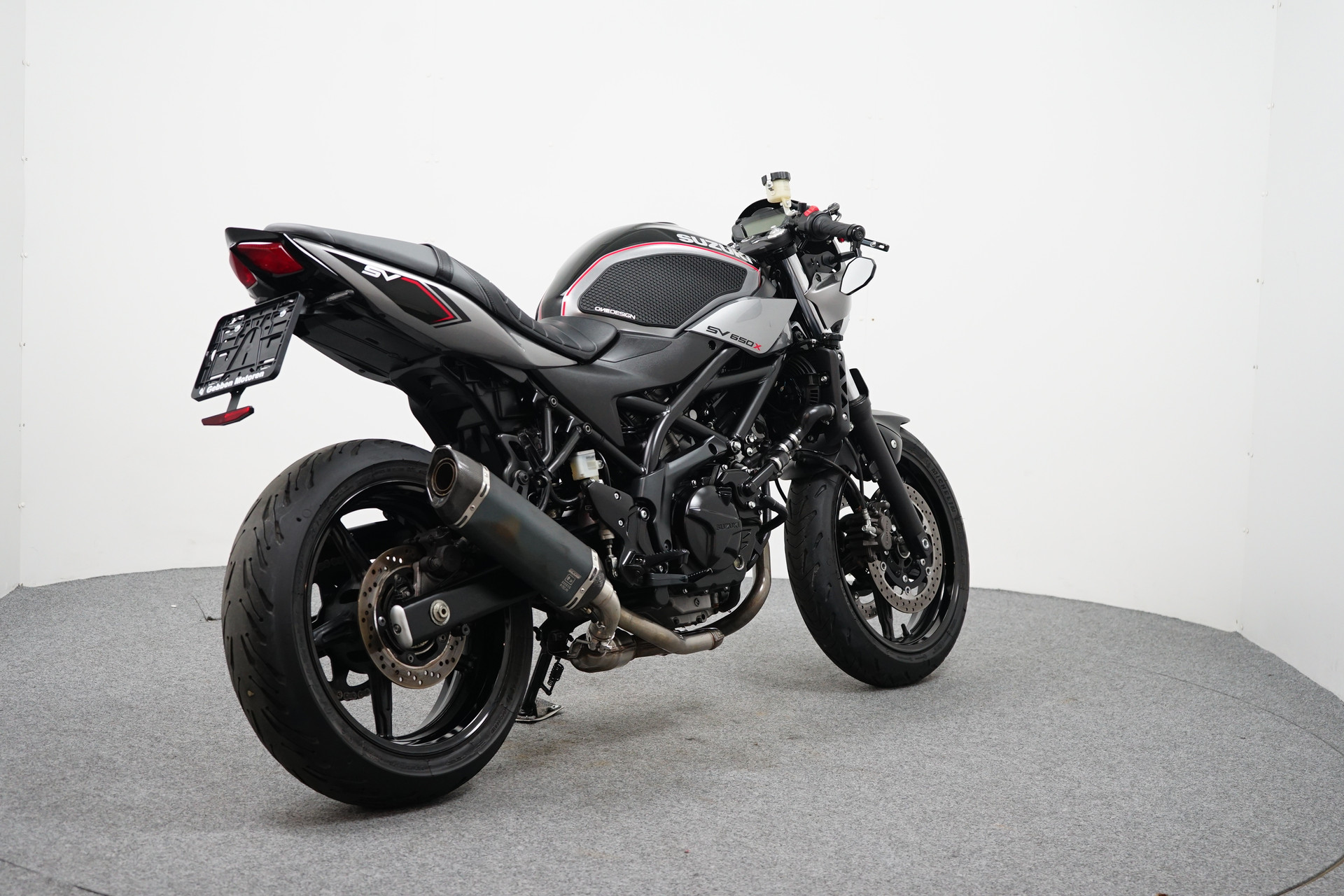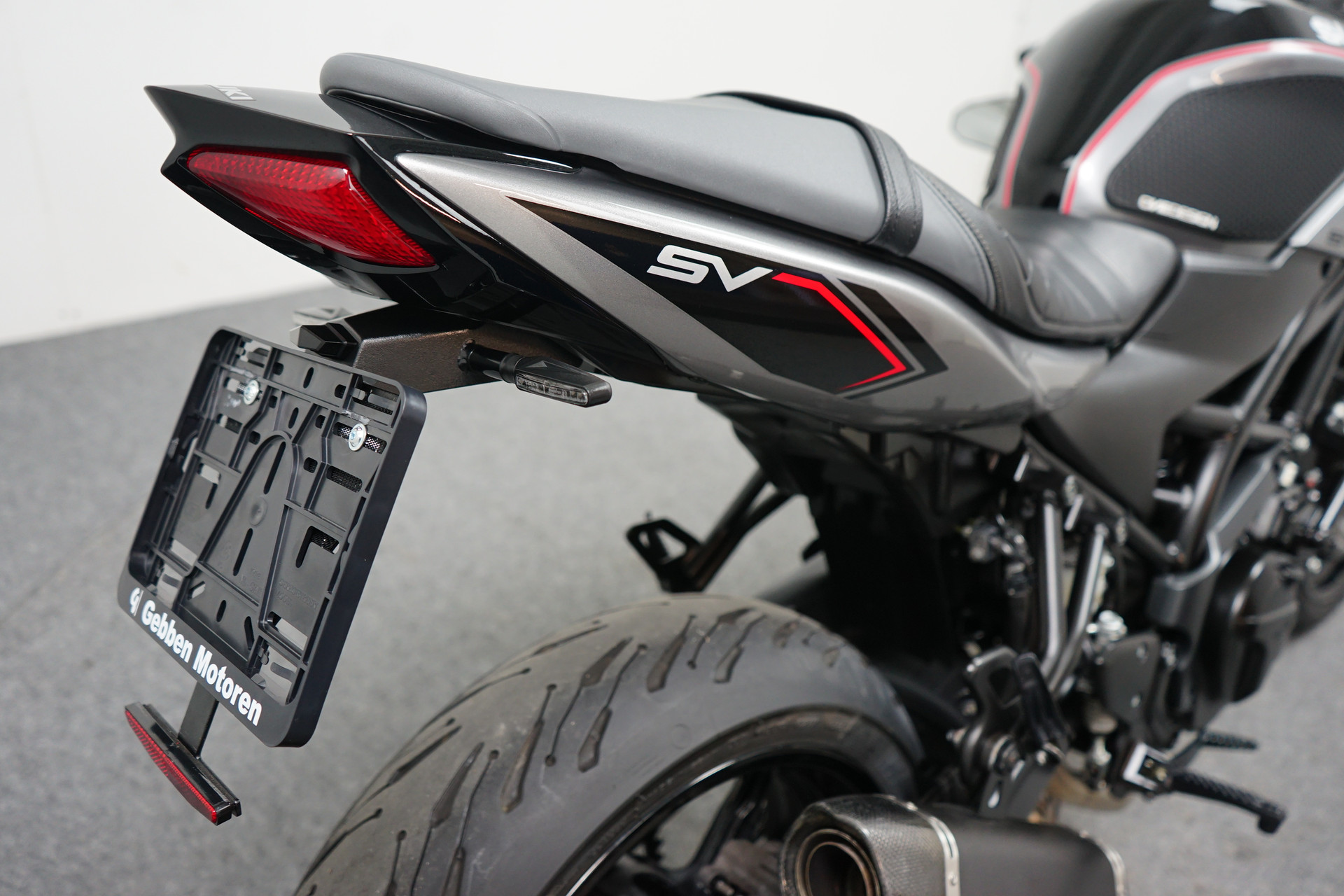 Een in zeer mooie staat verkerende Suzuki SV 650 X ABS met Side-pads, Bar-end spiegels, Instelbaar rem en koppeling hevel, Led knipperlichten, Korte kentekenplaathouder en een sportdemper.