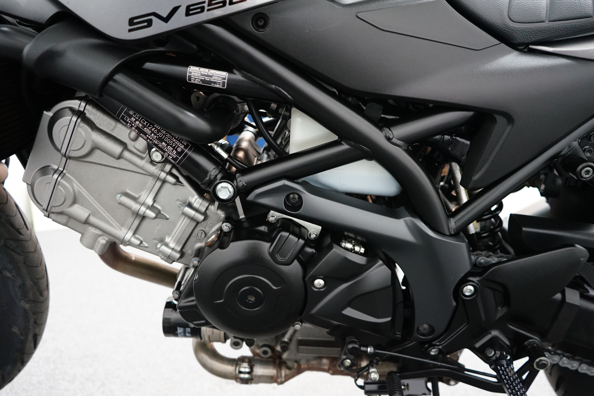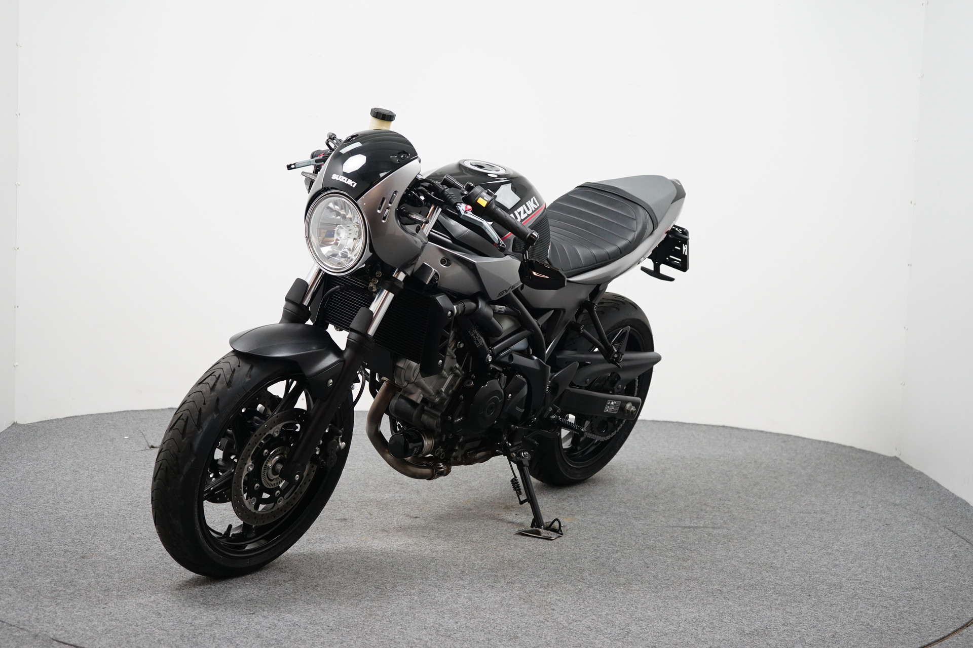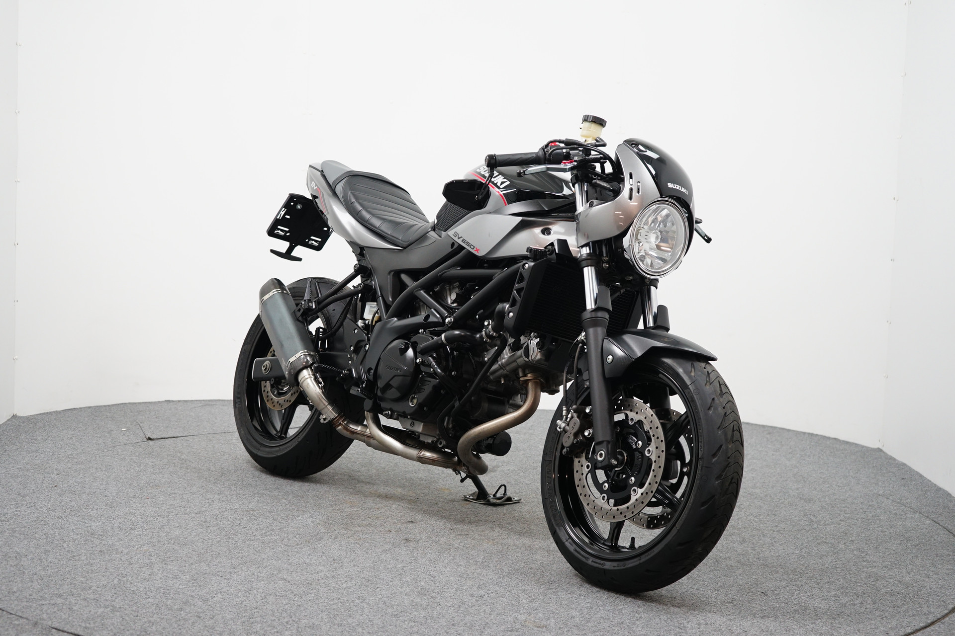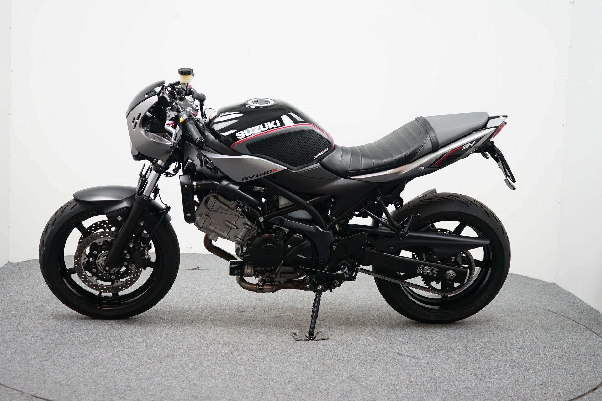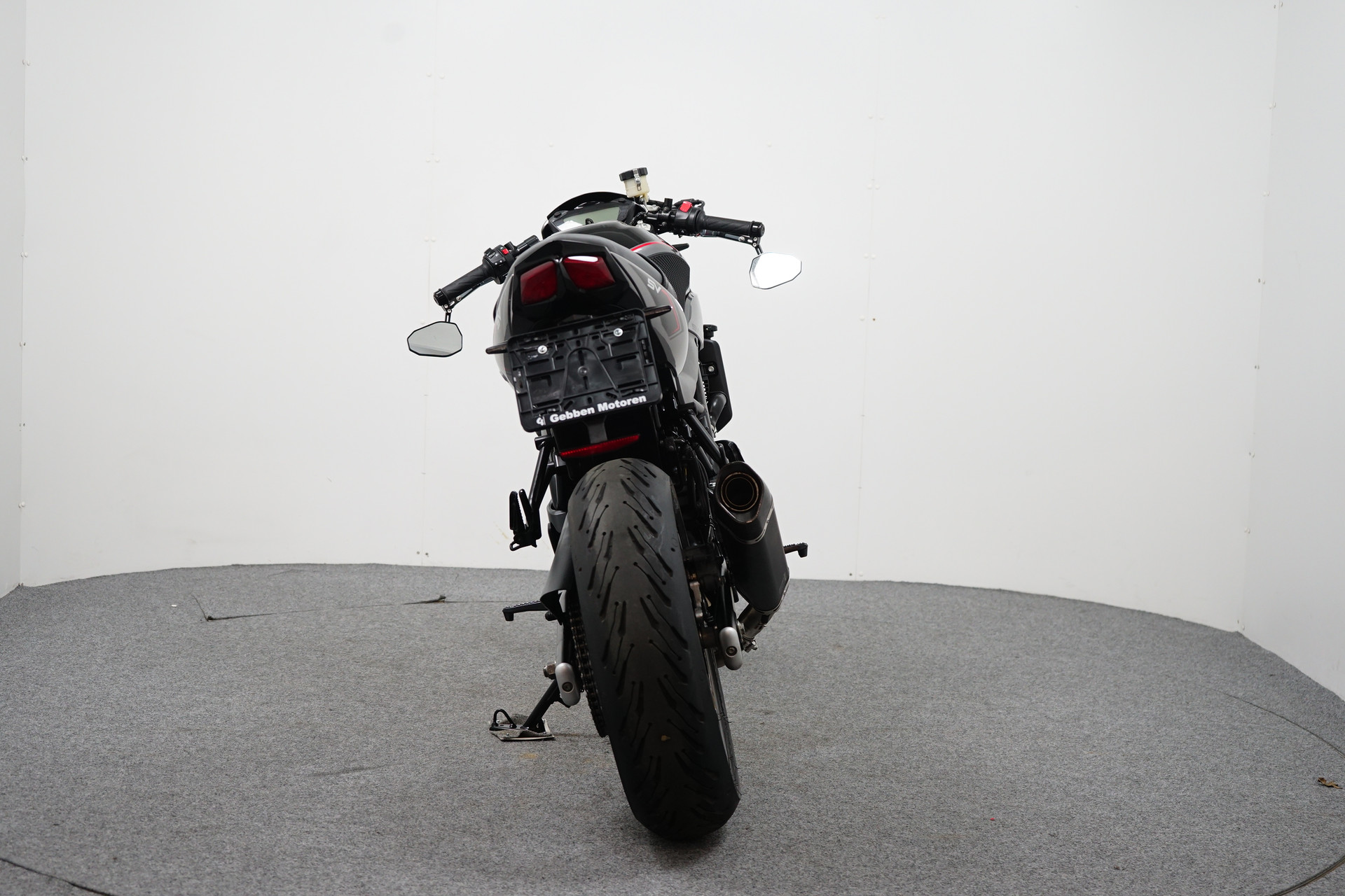 Een in zeer mooie staat verkerende Suzuki SV 650 X ABS met Side-pads, Bar-end spiegels, Instelbaar rem en koppeling hevel, Led knipperlichten, Korte kentekenplaathouder en een sportdemper.