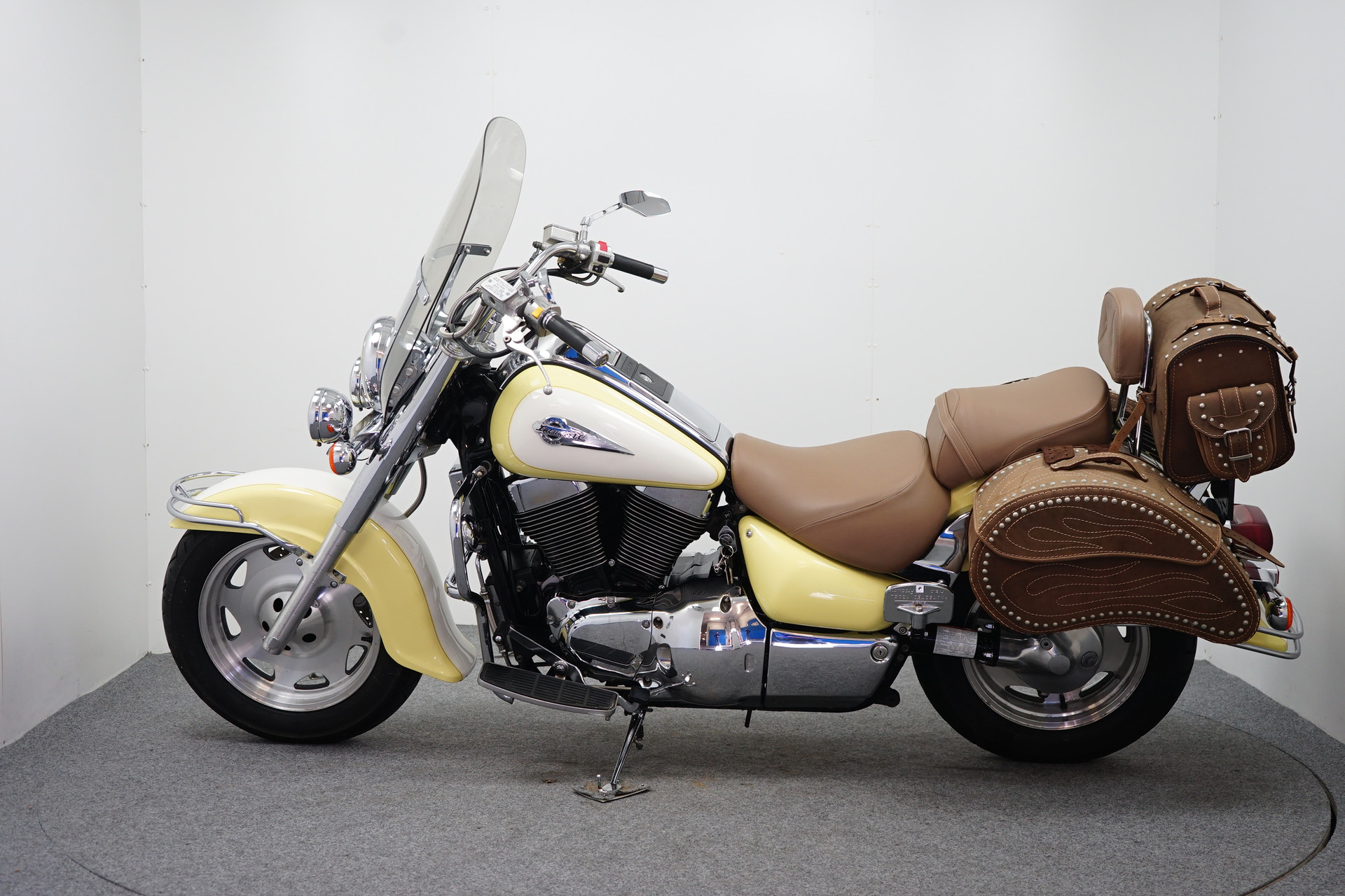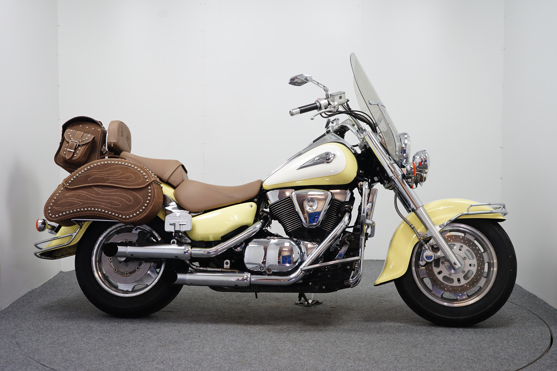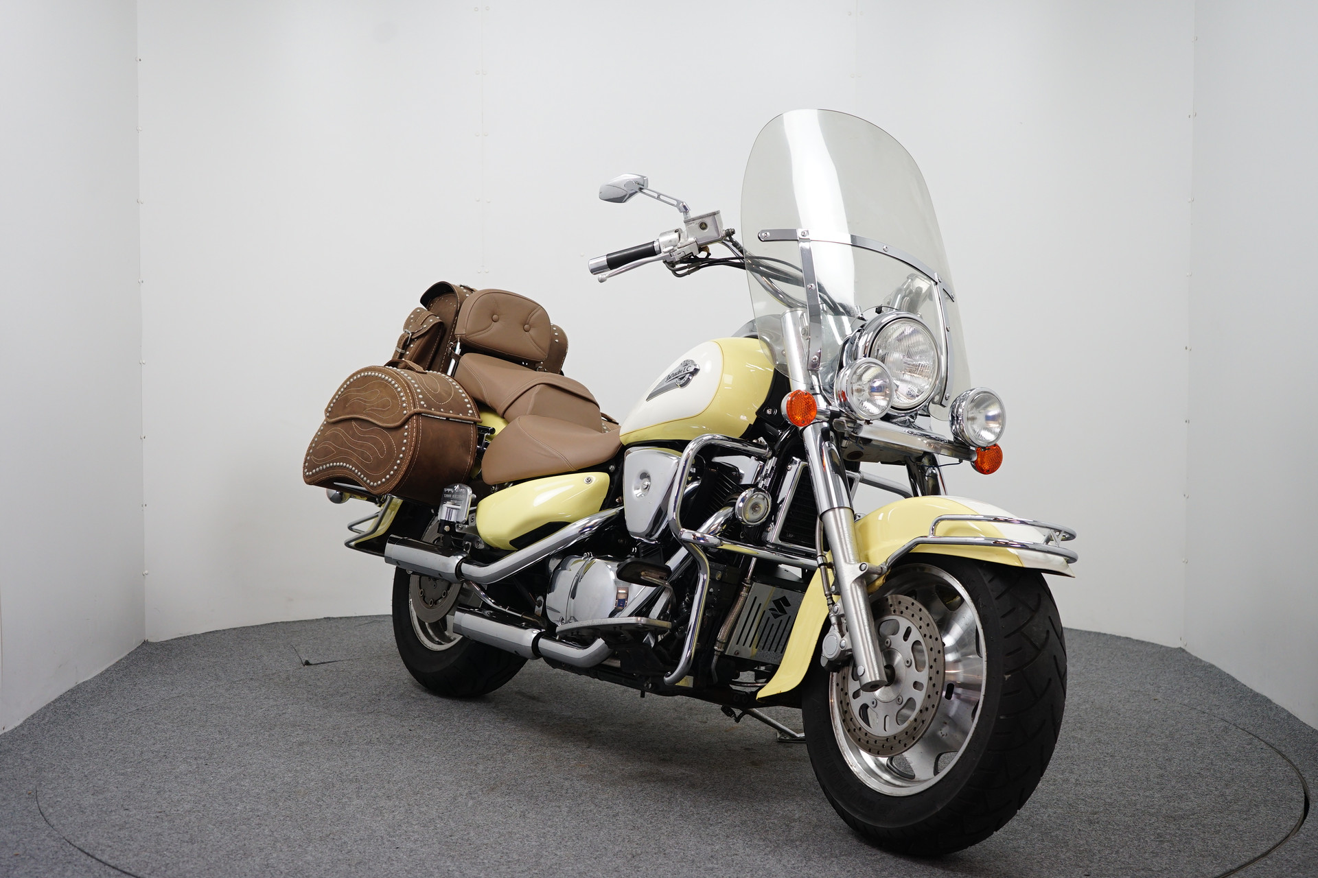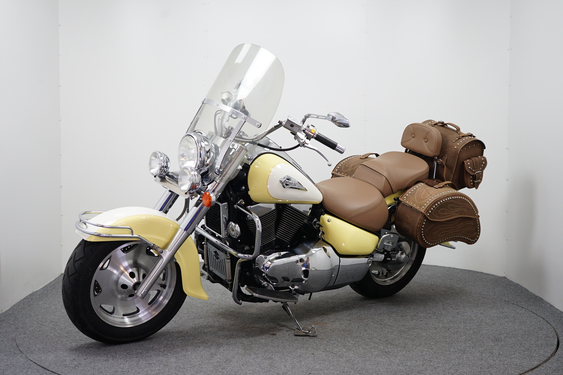 Een in zeer mooie staat verkerende Suzuki VL 1500 Intruder met 3-delige Tassenset, Treeplanken, Hak-teen schakeling en een Windscherm.