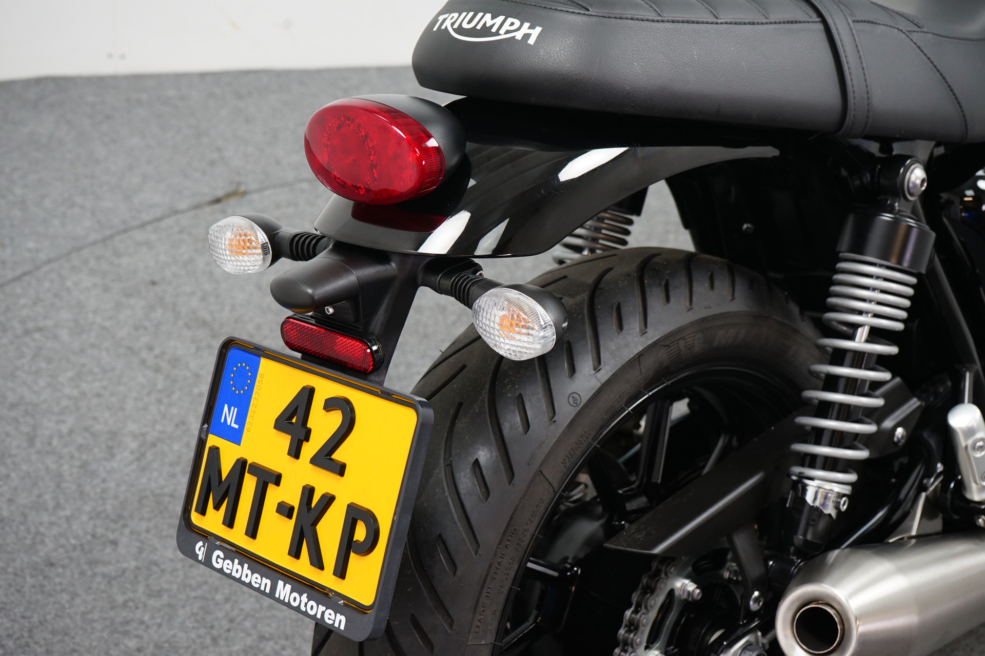 Prachtige Triumph Speed Twin 900 voorzien van ABS, TCS, Valbeugels, As beschermers en handvatverwarming.