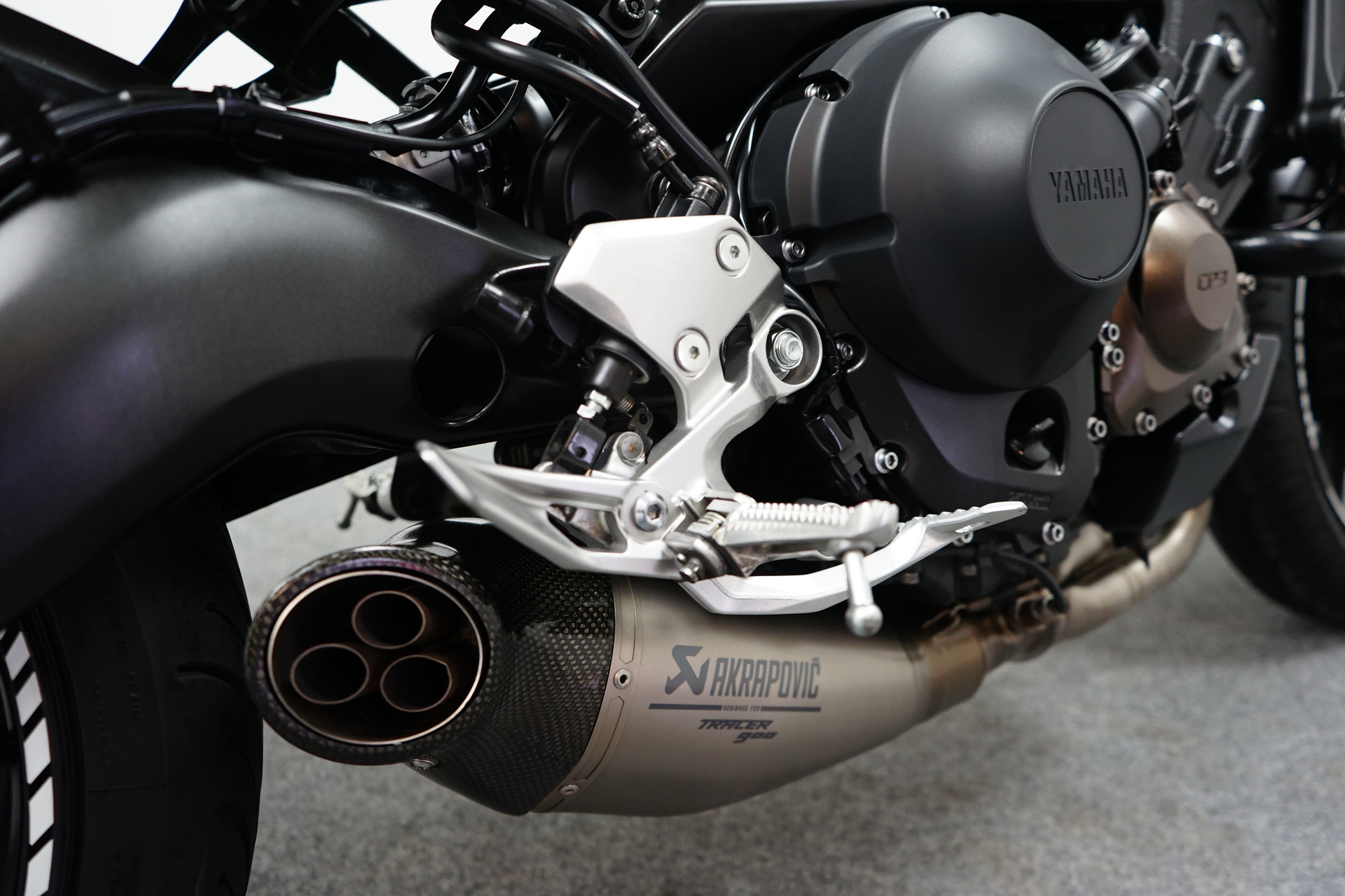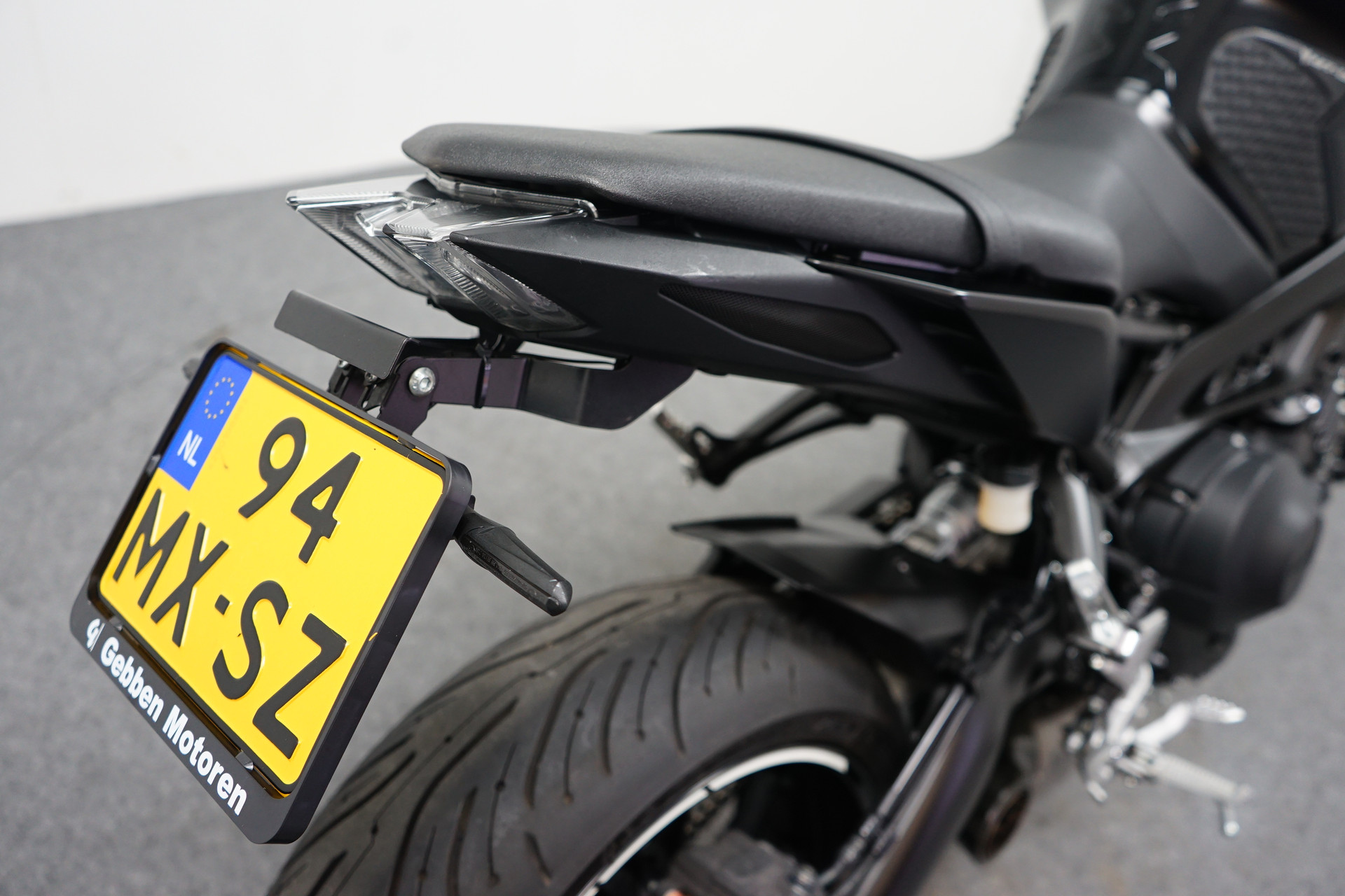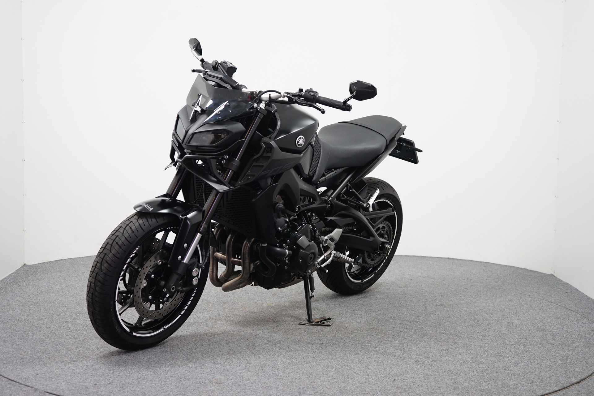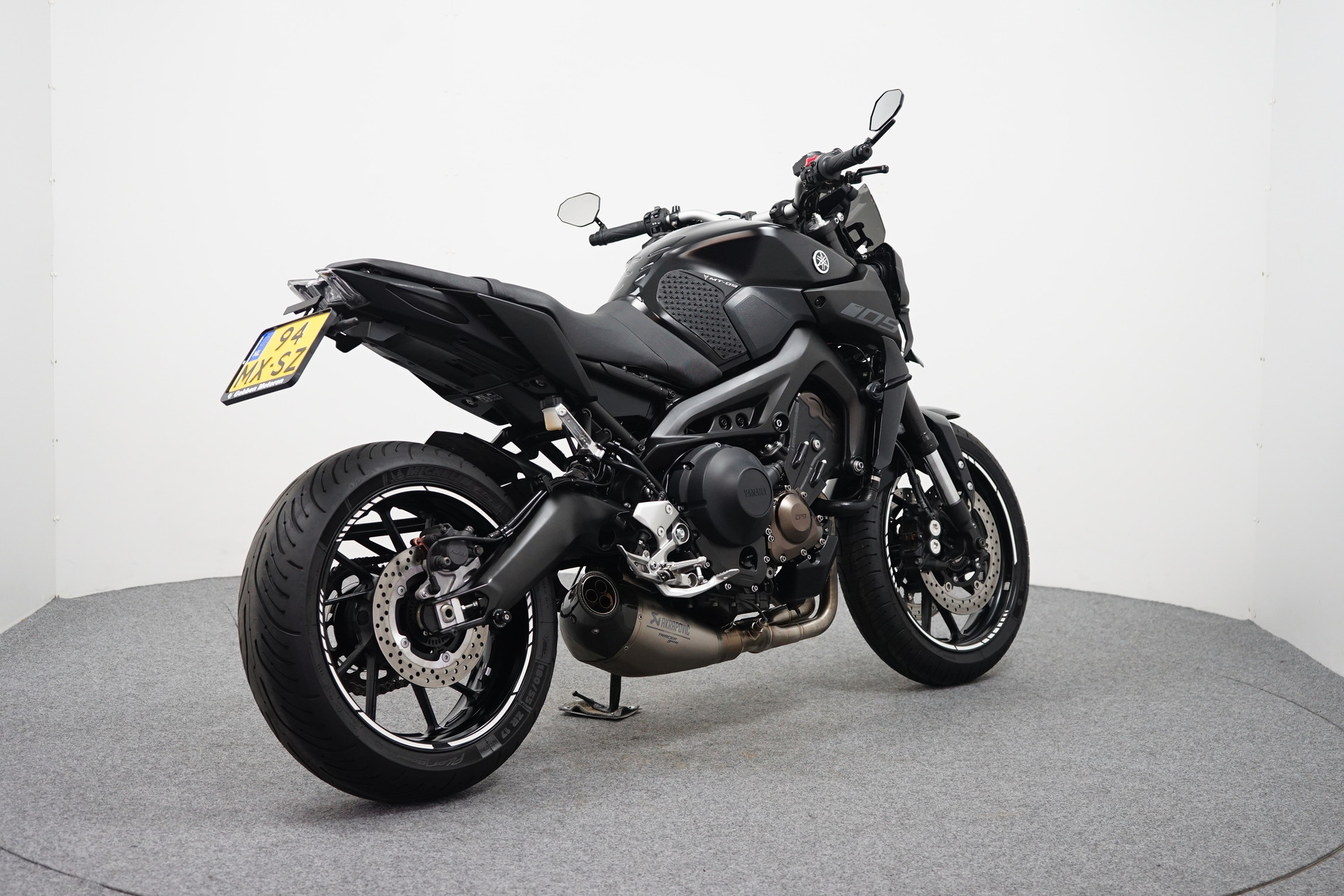Een in zeer mooie staat verkerende Yamaha MT-09 ABS met Akrapovic uitlaatsysteem, Bar-end spiegels, Handvatverwarming, Quickshifter en een Korte kentekenplaathouder.