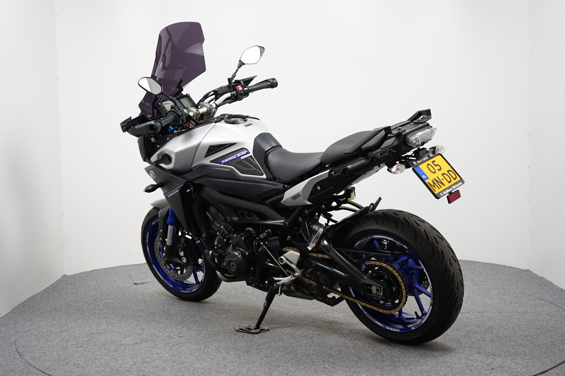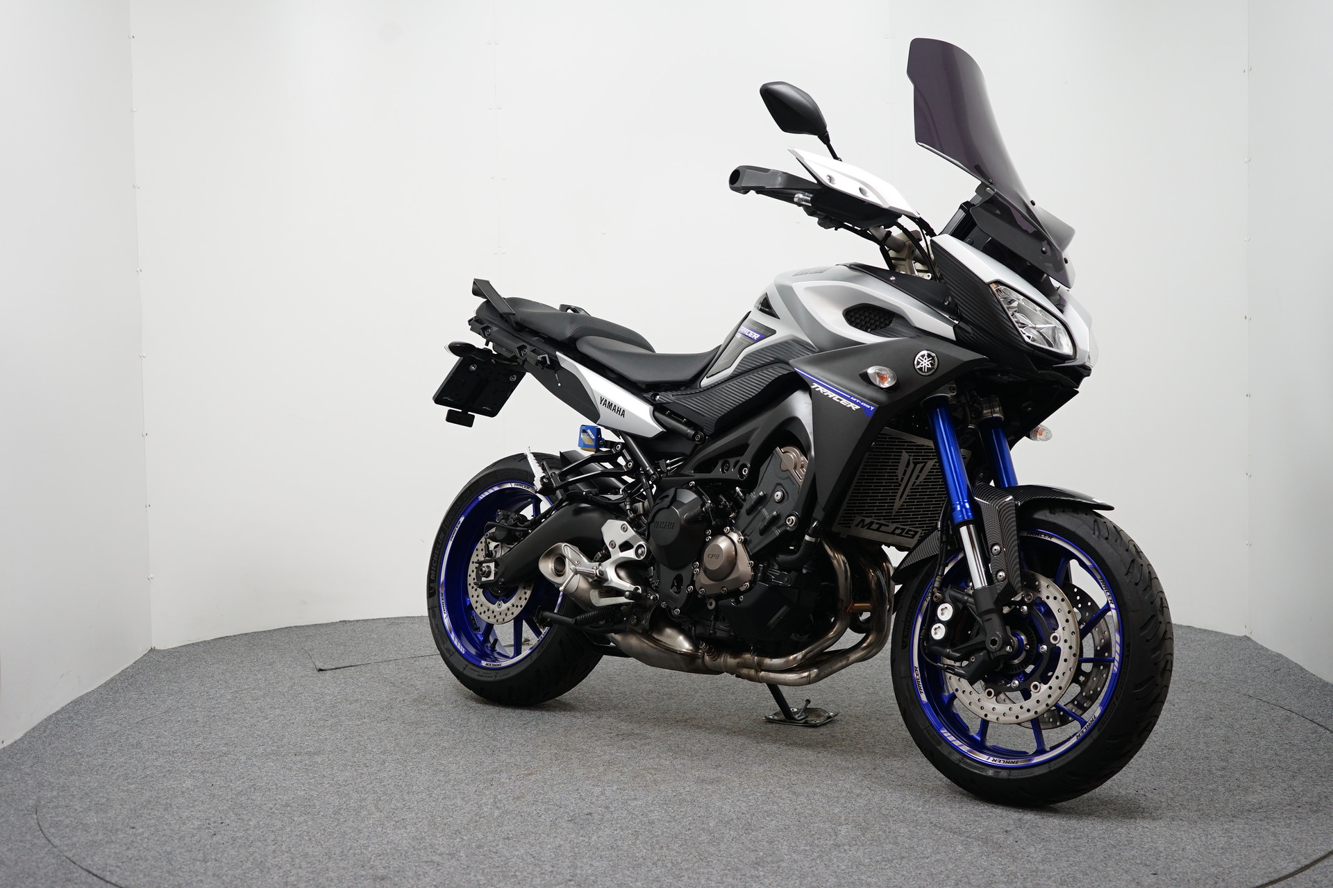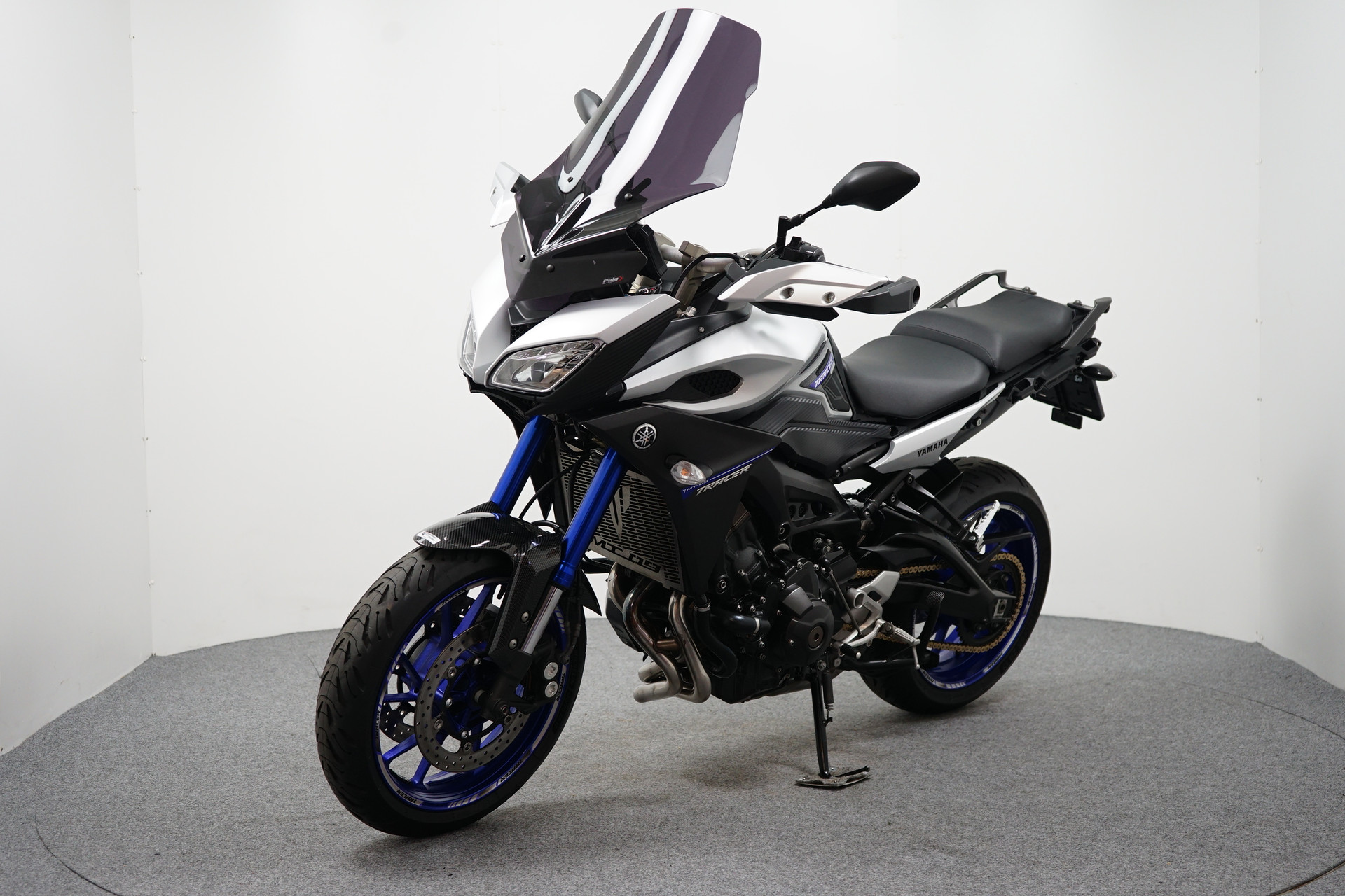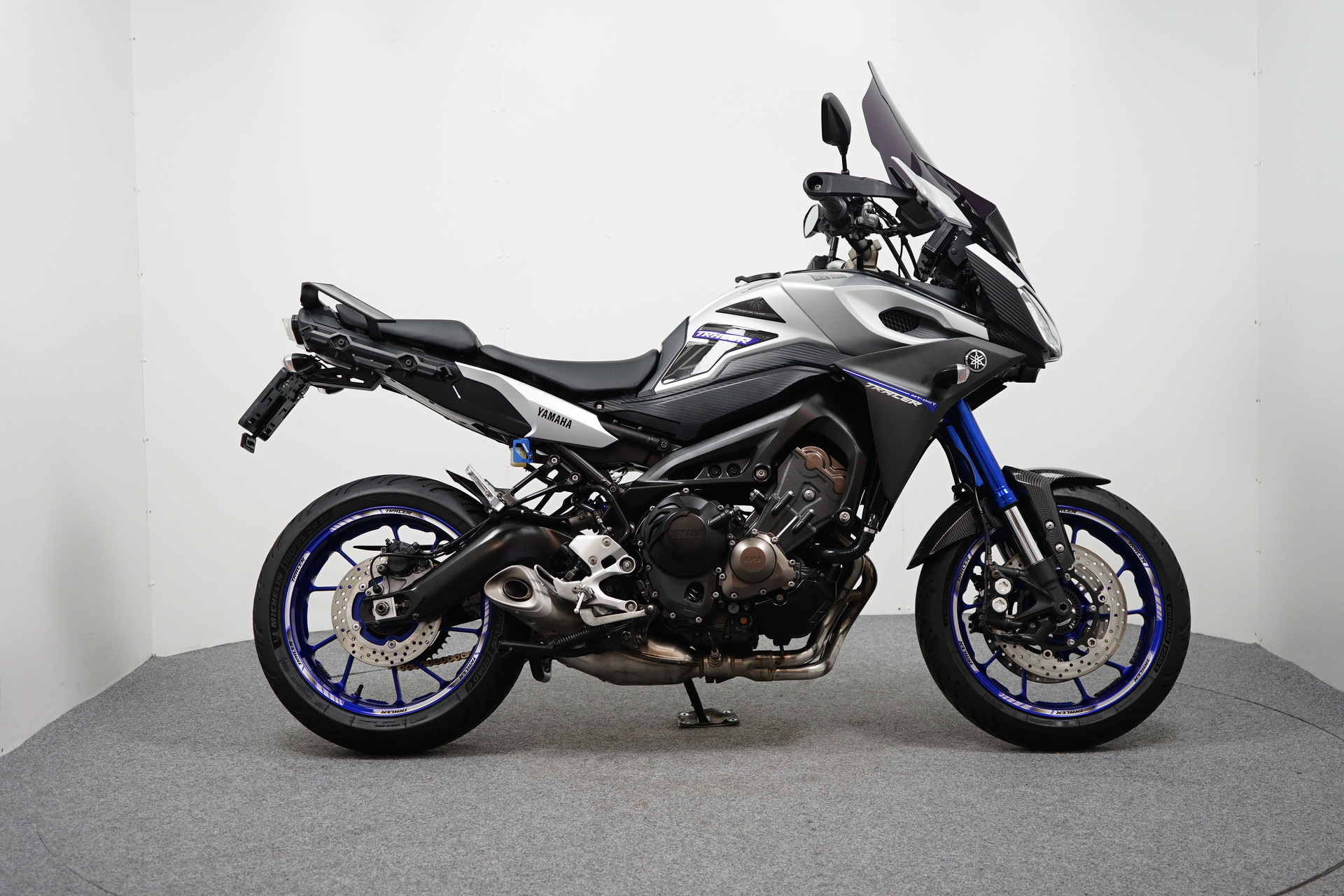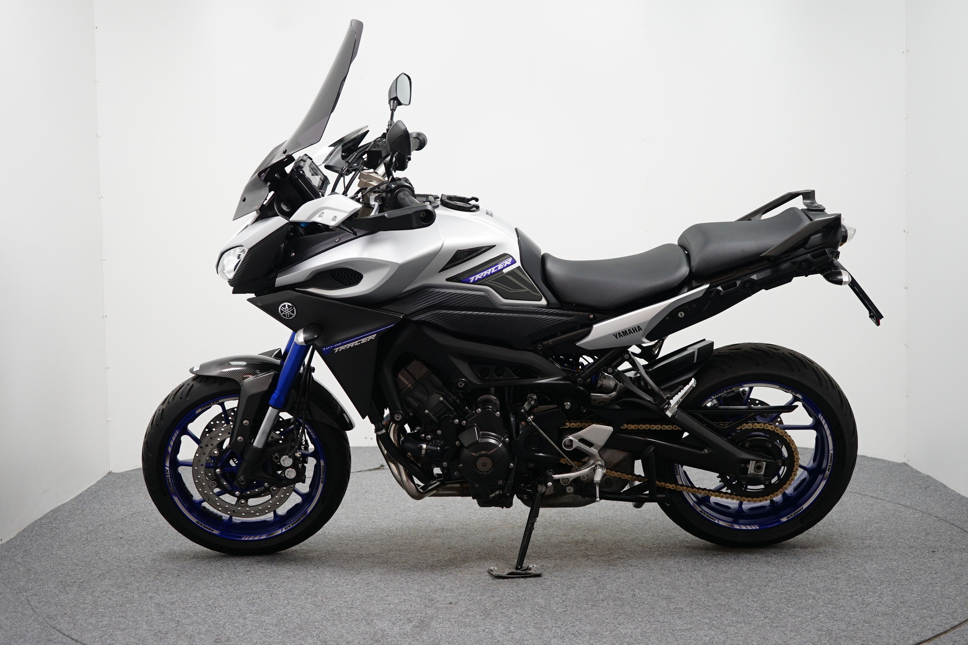 Nette en goed onderhouden Tracer 900, voorzien van middenbok, handvatverwarming, donkere tourruit, tankpads en tankring